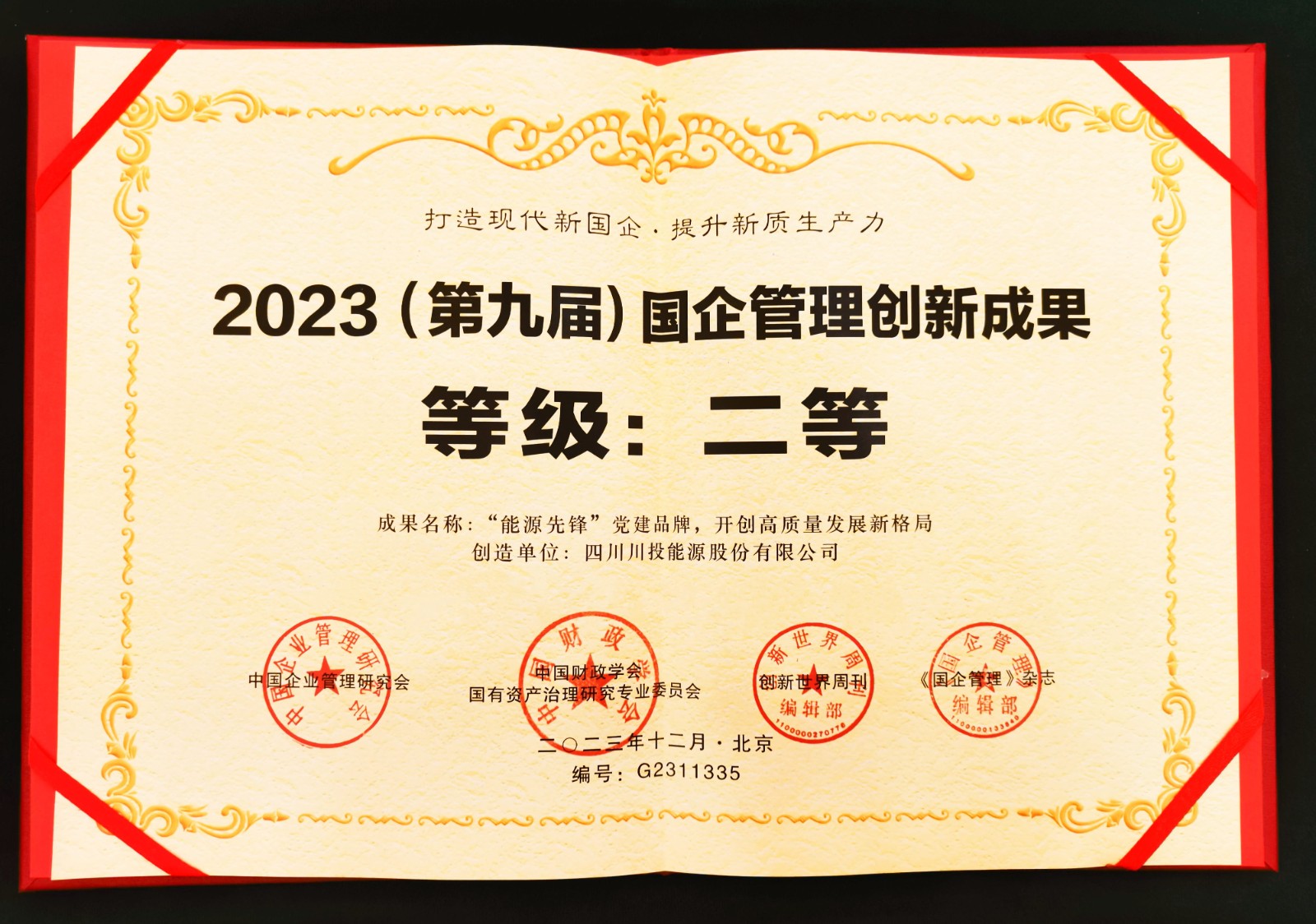 川投能源黨建創新成果(案例)榮獲2023(第九屆)國企管理創新成果二等獎
