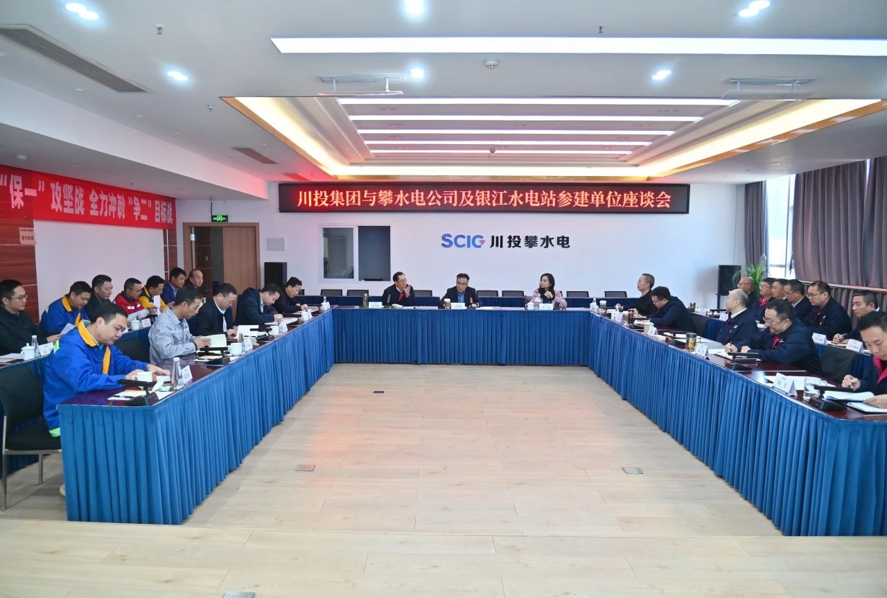 隨后,吳曉曦一行座談聽取了項目工程建設、投產計劃、科研創新等情況匯報,充分肯定了工程項目的階段性成績,并向參建各方的辛勤付出表示感謝。他強調,作為省級重點項目,銀江水電站承載著攀枝花市民的美好期待,高質量建成投產達效意義重大。參建各方要千方百計保進度,密切配合、攻堅克難,確保年底首臺機組發電;要千方百計保質量,堅持高標準、嚴要求,確保施工規范、質量過硬,努力打造標桿工程;要千方百計保安全,壓緊壓實安全生產責任,落實落細安全防護措施,堅決遏制事故發生;要認真履行國企責任,杜絕拖欠和克扣農民工工資,確保安全穩定和諧。會上,朱莉對安全、環保、維穩等工作作出具體安排。