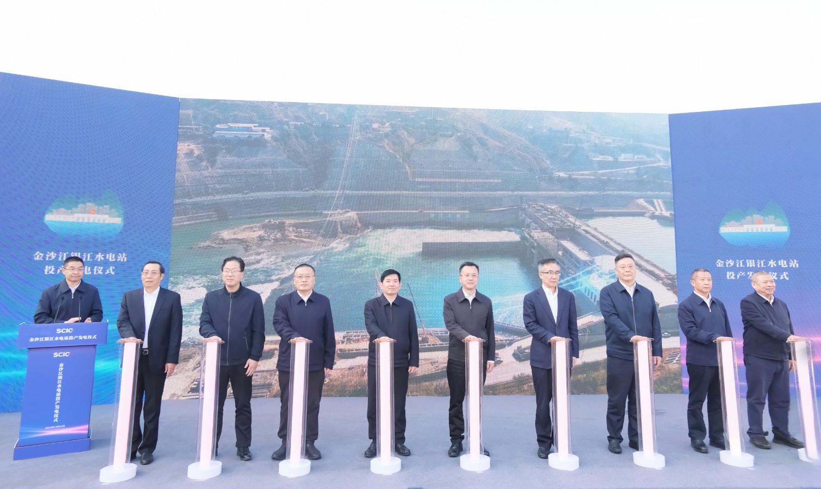 上午9時(shí)許,隨著儀式現(xiàn)場(chǎng)下達(dá)首臺(tái)機(jī)組開(kāi)機(jī)發(fā)電指令,吳群剛、吳曉曦、范繼躍、李文志、林建國(guó)、李仁杰等領(lǐng)導(dǎo)按下啟動(dòng)柱,共同啟動(dòng)金沙江銀江水電站投產(chǎn)發(fā)電,標(biāo)志著該水電站提前一年實(shí)現(xiàn)投產(chǎn)發(fā)電目標(biāo)。