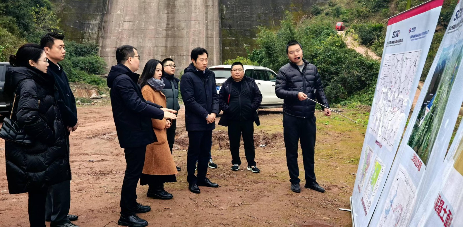 會前,戴月洪一行前往宜賓屏山書樓電站項目進行現(xiàn)場調(diào)研,在下水庫壩址位置聽取了項目總體布置情況匯報,在項目補水點和保寧村堆料場進行了現(xiàn)場踏勘,詳細了解了項目現(xiàn)場工作開展情況。
