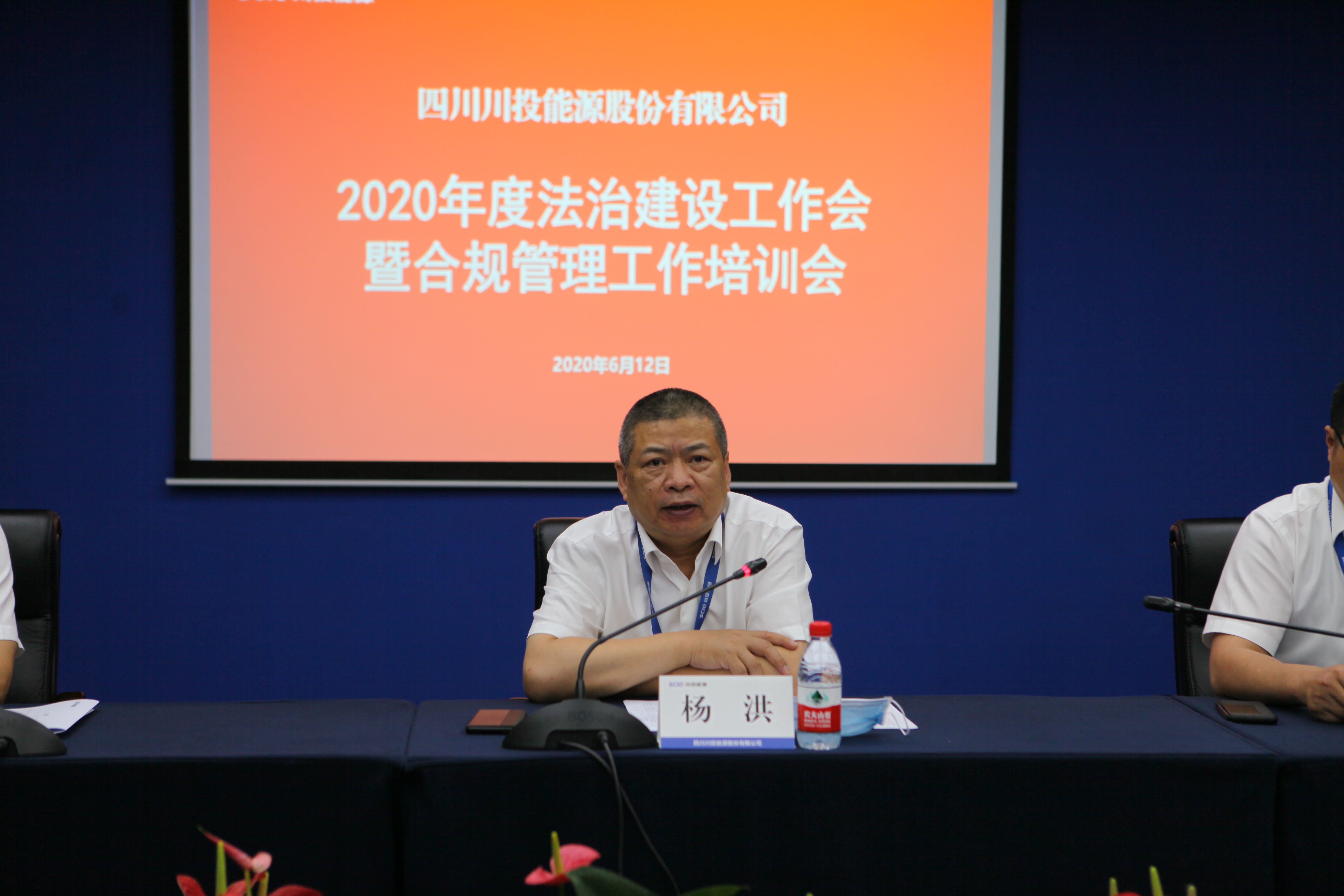 為深入傳達貫徹川投集團2020年度法治建設工作會議精神,進一步推進川投能源及所屬公司法治建設,6月12日,川投能源召開2020年法治建設工作暨合規管理工作培訓會。公司黨委書記、副董事長、總經理楊洪及在家領導班子成員出席會議,集團公司總法律顧問、法律事務部部長楊帆到會指導。會議由公司黨委委員、紀委書記、總法律顧問冉蘭平主持。