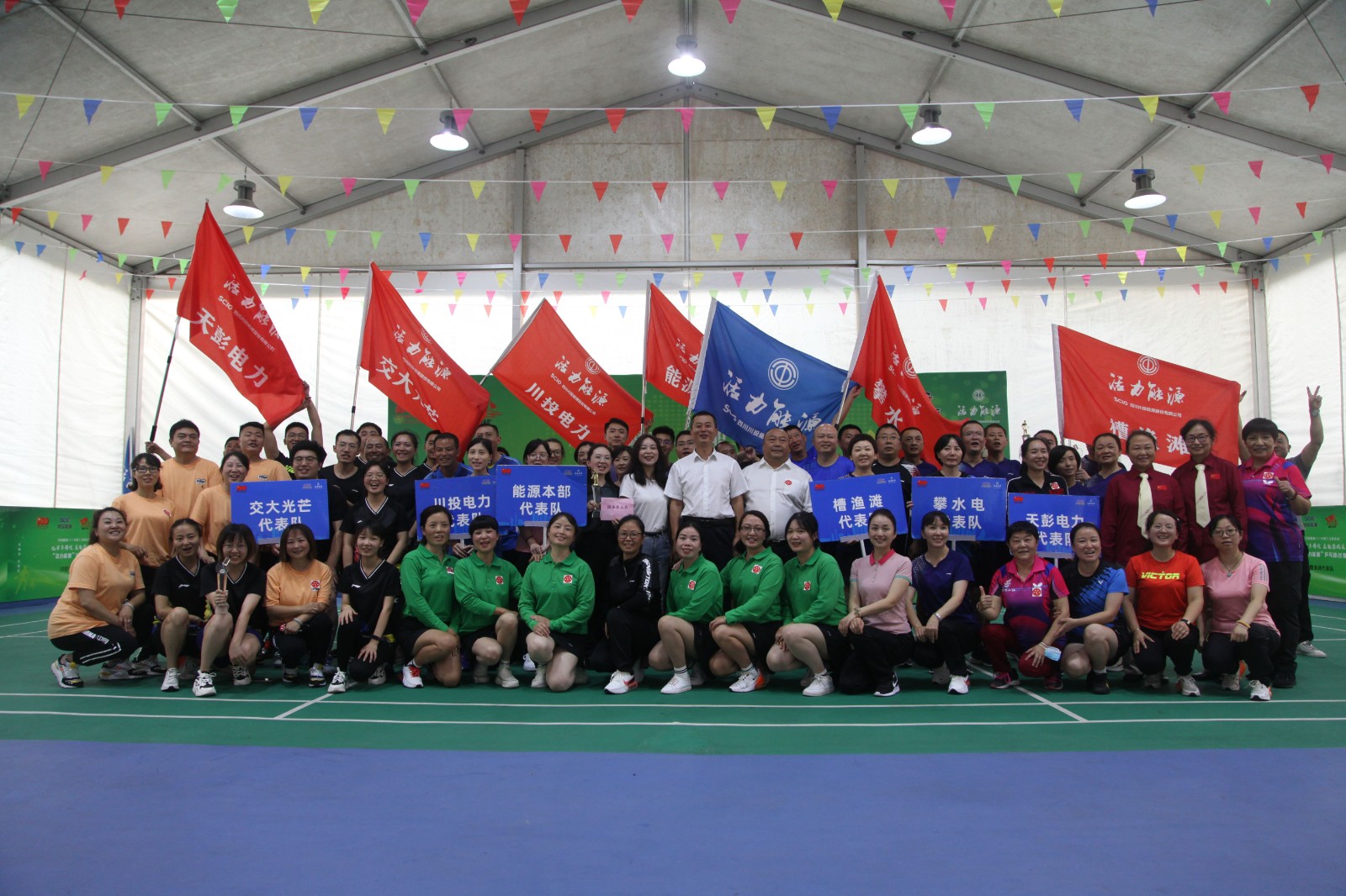 來自川投能源本部、川投電力、槽漁灘公司、攀水電、交大光芒和天彭電力的6支代表隊53名健兒齊聚賽場,用高超的球技、默契的配合和頑強的作風為大家奉上了一場場精彩紛呈、扣人心弦的比賽。賽場上,選手們全力迎戰每一個對手,積極拼搶每一次得分;賽場下,啦啦隊員和觀眾們以激情吶喊和熱烈歡呼源源不斷為選手加油助威、輸送能量,激勵他們努力拼搏。