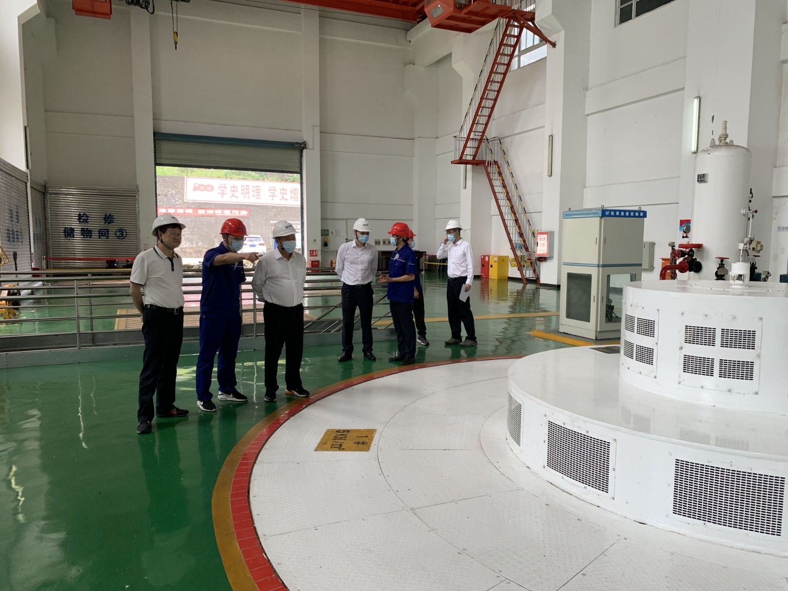 在電站廠房,楊洪仔細詢問了電廠機組運行狀況,要求電廠科學編制檢修計劃,精心維護檢修,保持機組健康狀態,做好枯水期電力保供工作,力爭滿發多供。
