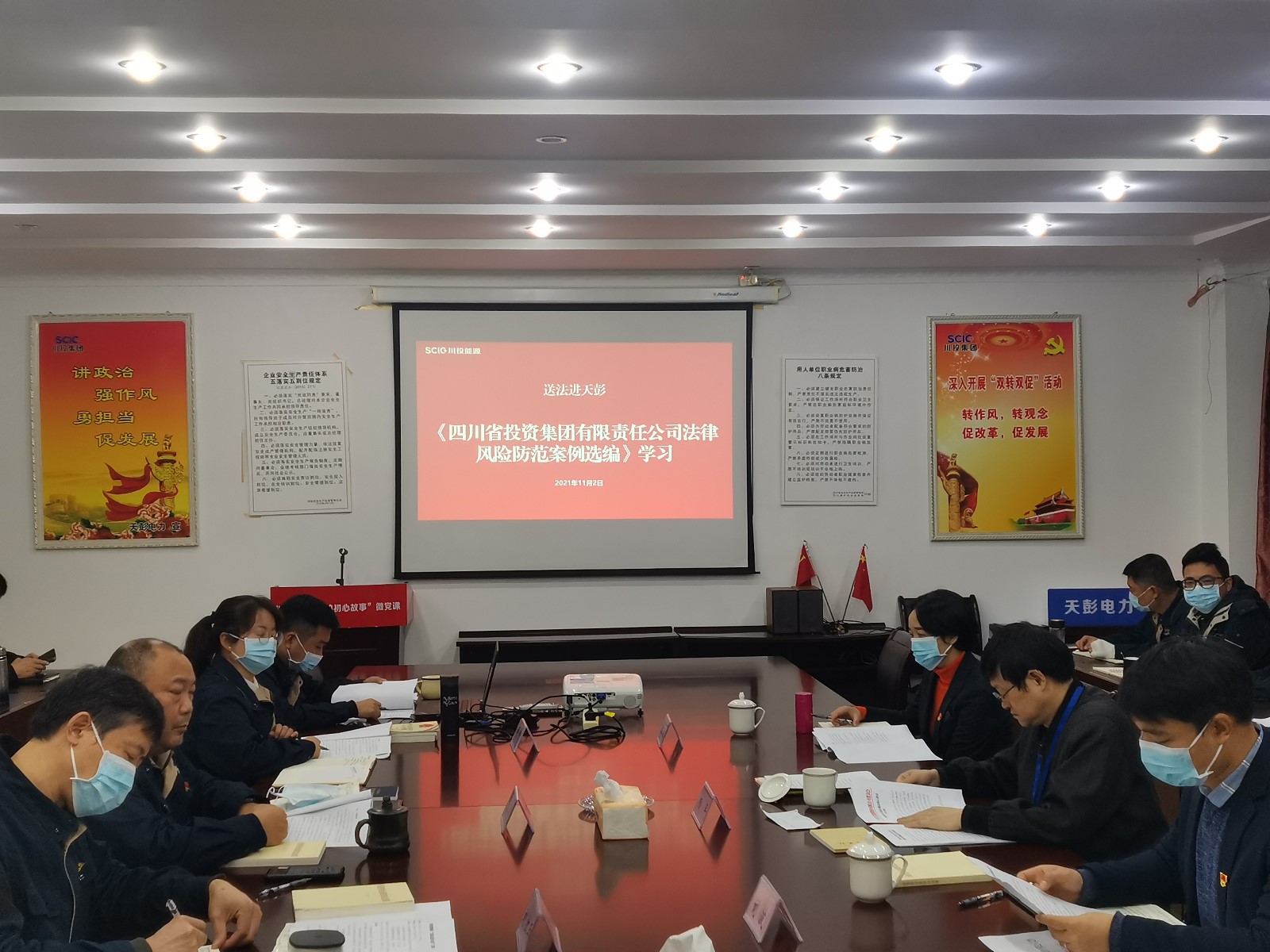 按照川投能源關于開展以案學法、以案促改活動的部署安排,11月2日,川投能源黨委委員、副總經理、總法律顧問楊平率隊來到天彭電力,以現場宣講方式“送法進天彭”。天彭電力經營班子、黨員干部和關鍵崗位人員參加了活動。