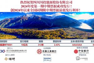 川投能源成功發(fā)行10億元中期票據(jù)創(chuàng)2024年以來(lái)全國(guó)同期限中期票據(jù)最低發(fā)行利率