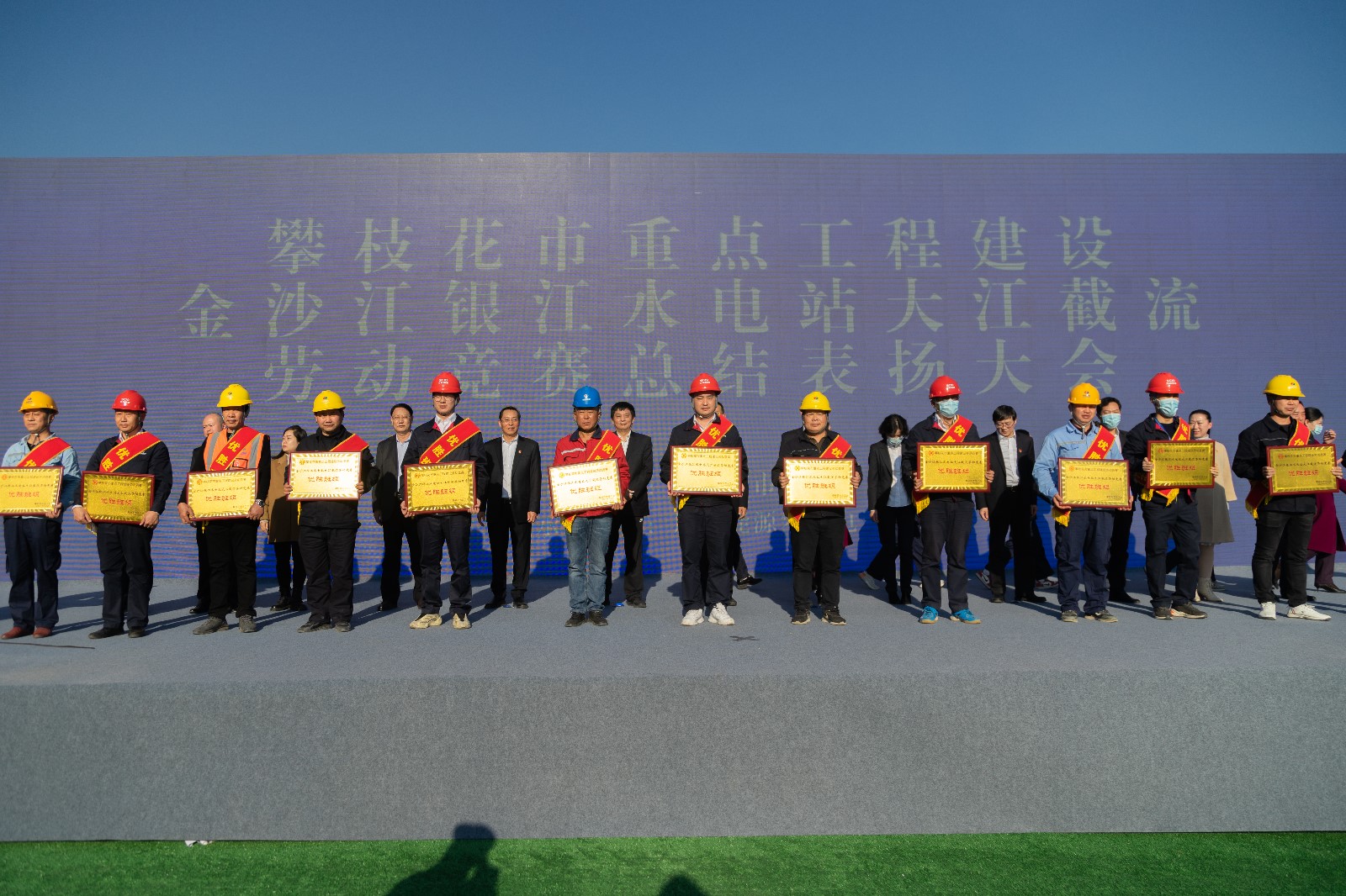 會議首先由川投能源副總經(jīng)理、攀水電公司黨總支書記、董事長徐孝剛作大江截流勞動競賽總結(jié)報告,在攀枝花市重點工程建設勞動競賽的安排部署下,通過開展“勠力奮戰(zhàn)三百天、打贏截流攻堅戰(zhàn)”等勞動競賽活動,取得了提前一年實現(xiàn)大江截流良好成績。公司黨總支委員、總經(jīng)理吳巍嶼宣讀了《攀枝花市總工會關于表揚金沙江銀江水電站大江截流勞動競賽優(yōu)秀集體、優(yōu)勝班組、先進個人的決定》,與會領導共同為受表彰的10個優(yōu)秀集體、13個優(yōu)勝班組、30名先進個人授牌頒獎并頒發(fā)證書,獲獎的先進集體和先進個人代表分別作了發(fā)言。