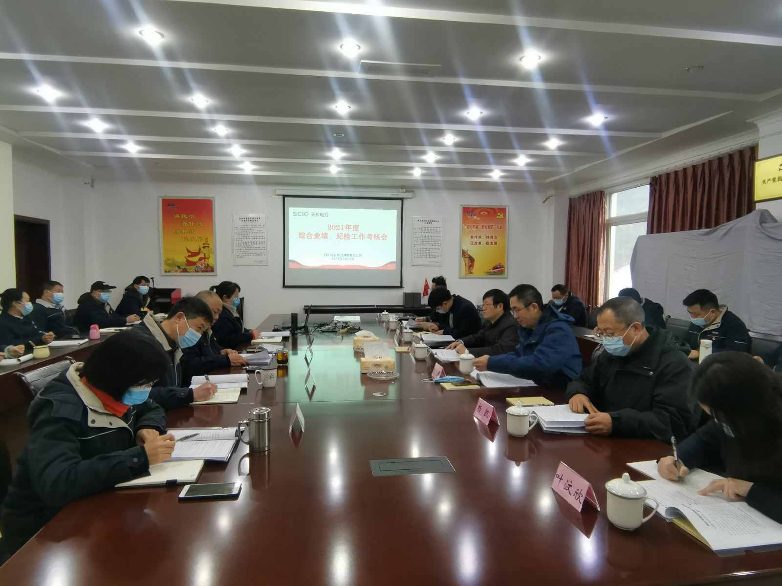 1月12日,川投能源黨委委員、副總經(jīng)理、總法律顧問楊平率隊(duì)赴天彭電力,開展黨建工作、紀(jì)檢監(jiān)察、生產(chǎn)經(jīng)營等五方面綜合業(yè)績考核,充分發(fā)揮考核在檢驗(yàn)工作成效、推動(dòng)改革發(fā)展中的導(dǎo)向作用。川投能源考核組成員、天彭電力經(jīng)營班子成員、中層干部、員工代表參加會議,川投能源經(jīng)營管理部經(jīng)理陳元峰主持會議。