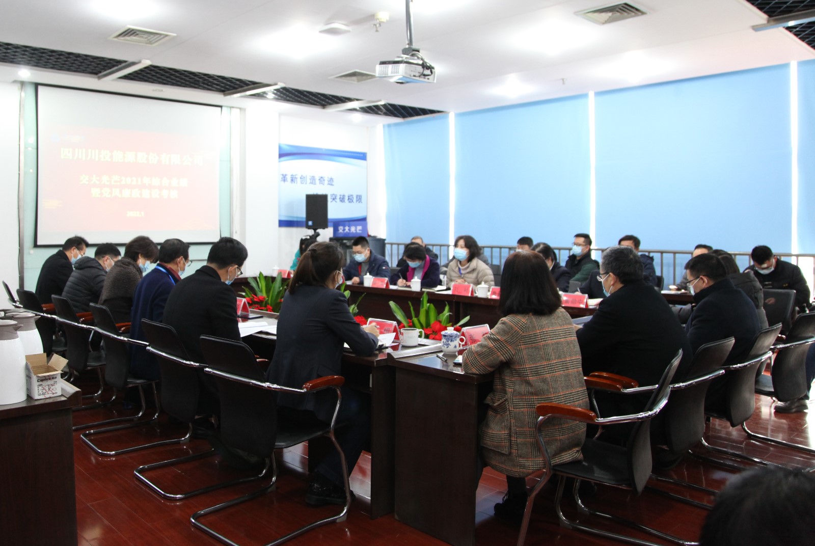 根據(jù)川投能源2021年度考核工作的統(tǒng)一部署,1月11日,川投能源黨委委員、財(cái)務(wù)總監(jiān)、考核組長(zhǎng)劉好率隊(duì)赴交大光芒開(kāi)展2021年度綜合業(yè)績(jī)暨黨風(fēng)廉政建設(shè)考核工作。川投能源考核組、交大光芒經(jīng)營(yíng)班子、中層副職以上管理人員及一線(xiàn)員工代表參加考核會(huì),川投能源證券事務(wù)部、資本運(yùn)營(yíng)部經(jīng)理魯晉川主持會(huì)議。