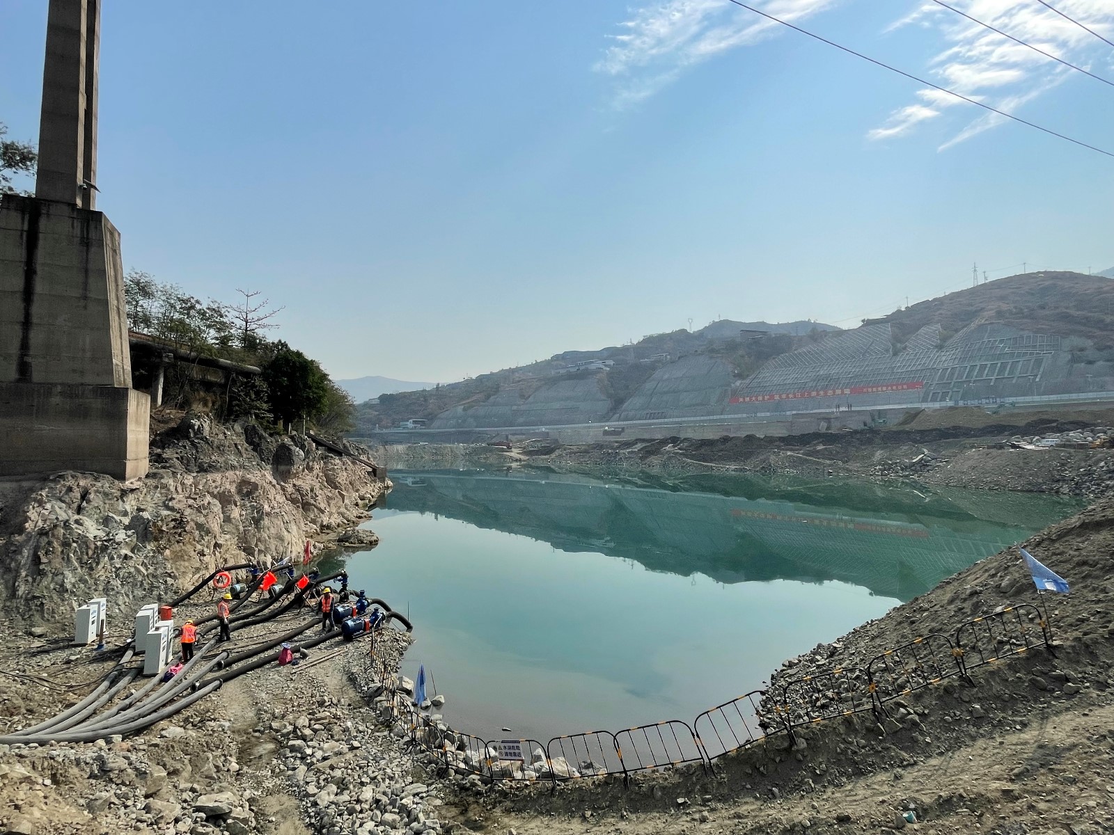 面對二期圍堰工期緊等實際困難,公司組織施工單位合理配置施工資源,精心組織現(xiàn)場施工,水電五局項目部領(lǐng)導(dǎo)春節(jié)期間帶頭堅守崗位,施工現(xiàn)場正常組織施工,順利完成二期圍堰閉氣重要節(jié)點目標,下一階段將重點做好圍堰加高培厚及土工膜安裝工作,確保汛前能按期完成施工;面對銀江大橋爭取2023年春節(jié)前具備通車條件的要求,公司認真組織審核施工方案,督促落實各項安全措施,重點關(guān)注掛籃安裝等工作,1#橋墩0#節(jié)段、右岸連接道路、下穿箱涵開挖等全部按照計劃順利推進;面對左岸邊坡開挖支護、G353國道改建與污水管道代建及地下管線遷改存在的施工干擾問題,公司積極與政府部門及主要參建單位溝通協(xié)商,明確布置方案及節(jié)點目標,做好交叉施工保障措施,各項工作正按照既定目標有序推進;面對即將來臨的汛期,公司提前組織開展地災(zāi)隱患排查工作,針對檢查發(fā)現(xiàn)的問題下發(fā)整改通知,并督促施工單位認真整改,確保汛前完成整改工作。