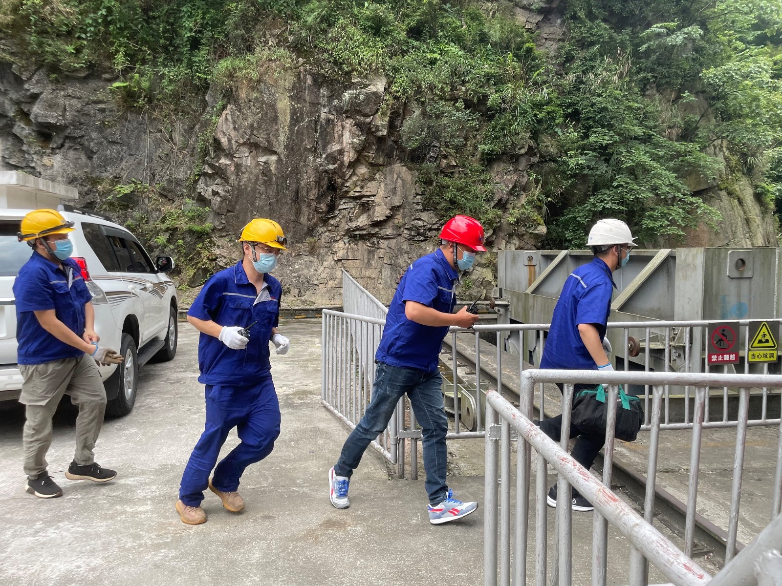 隨著演練總指揮喇叭河鎮(zhèn)副鎮(zhèn)長徐志鵬一聲令下,演練正式開始。地震警示鈴聲響起,大壩值班員迅速撤離到避險(xiǎn)區(qū)域,待主震過后,立即開展設(shè)備設(shè)施巡視檢查,并同步開展信息上報(bào)、水庫水位控制一系列工作。演練以模擬電廠“300kW柴油發(fā)電機(jī)不能啟動(dòng)”為背景,大壩參演人員匯報(bào)中控室,隨后應(yīng)急搶修組立即趕赴現(xiàn)場,對出現(xiàn)的故障進(jìn)行逐一排查和縝密分析,在規(guī)定的時(shí)間內(nèi)完成了設(shè)備的搶險(xiǎn)任務(wù)。最后,演練指揮組發(fā)出指令“腳基坪電廠大壩右岸邊坡土質(zhì)地層有飛石,竹林內(nèi)揚(yáng)起沙塵,存在塌方風(fēng)險(xiǎn),人員立即撤離”,險(xiǎn)情就是命令,參演人員有序、安全開始撤離,隨著最后一根警戒線布置完成,本次演練圓滿結(jié)束。