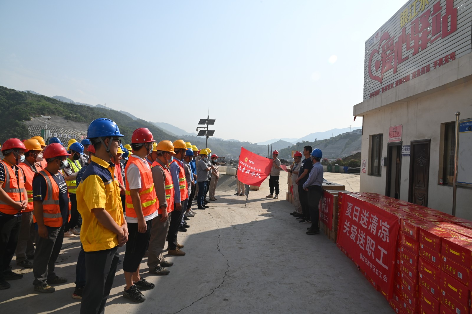 連日來,攀枝花持續(xù)高溫,氣溫屢屢突破34℃高溫,7月8日上午,為切實維護銀江水電站一線工作者身體健康和合法利益,把關懷送到每一位工友身邊,攀枝花市東區(qū)總工會赴銀江水電站工地開展送清涼慰問活動,東區(qū)總工會維權工作部部長劉欣,長江設計集團銀江項目常務副經理、設總、設代處長汪慶元,公司志愿者服務隊參加慰問,公司黨總支委員、董事會秘書、工會主席鄧勇主持活動。