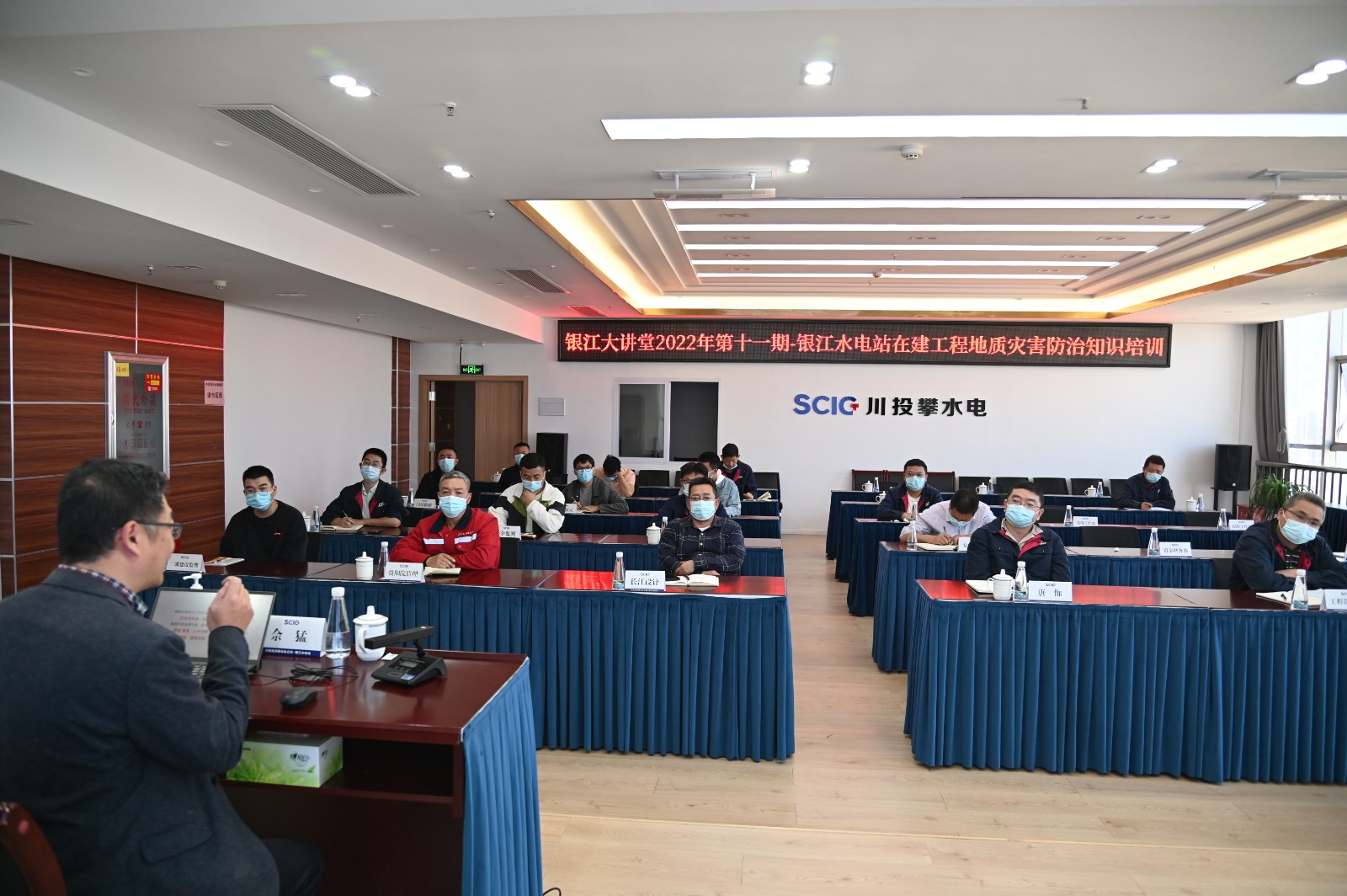 為提高地質災害防治能力,繃緊安全生產這根弦,2022年12月2日攀水電公司利用銀江大講堂平臺,組織各參建單位開展了在建工程地質災害防治知識培訓,邀請到攀枝花市國土空間生態修復與地質災害防治中心高級工程師佘猛進行授課,攀水電公司副總經理唐伽出席了培訓,公司各部門及各參建單位防汛值班人員代表共計30余人參加了培訓,培訓由工程管理部經理嚴瑞平主持。