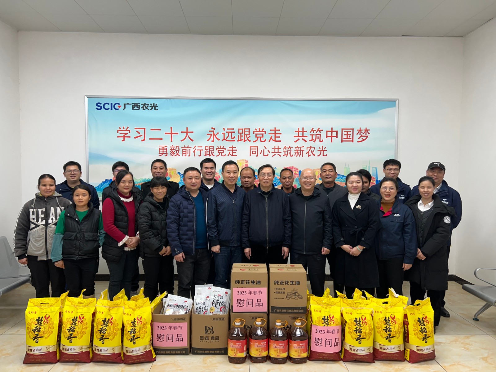 會后,徐孝剛、周軍對全體職工、運維單位人員進行了新春慰問,為大家送上了春節(jié)慰問品,并代表攀新能源公司向廣西農(nóng)光公司和運維單位全體員工致以新春的祝福!