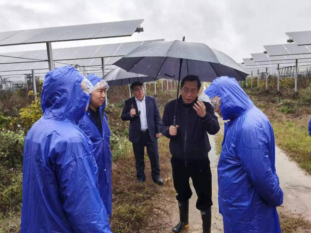 徐孝剛一行首先來到桂平光伏電站光伏現(xiàn)場,冒著大雨檢查了光伏電站一期小龍蝦養(yǎng)殖基地、二期園藝基地和澳洲淡水龍蝦養(yǎng)殖基地等農(nóng)光互補項目的安全運行情況;隨后來到桂平升壓站,在中控室聽取了光伏電站2022年整體運行狀況和發(fā)電量數(shù)據(jù)、安全管理、農(nóng)業(yè)發(fā)展等情況匯報,徐孝剛強調(diào),電站生產(chǎn)運行人員一定要嚴格按照國家安全生產(chǎn)法及電站安全管理制度的要求執(zhí)行、落實安全生產(chǎn)工作,牢牢守住安全生產(chǎn)的底線和紅線,確保電站安全管理可控、在控,穩(wěn)定運行。
