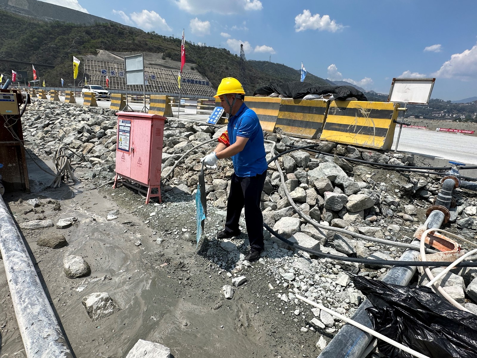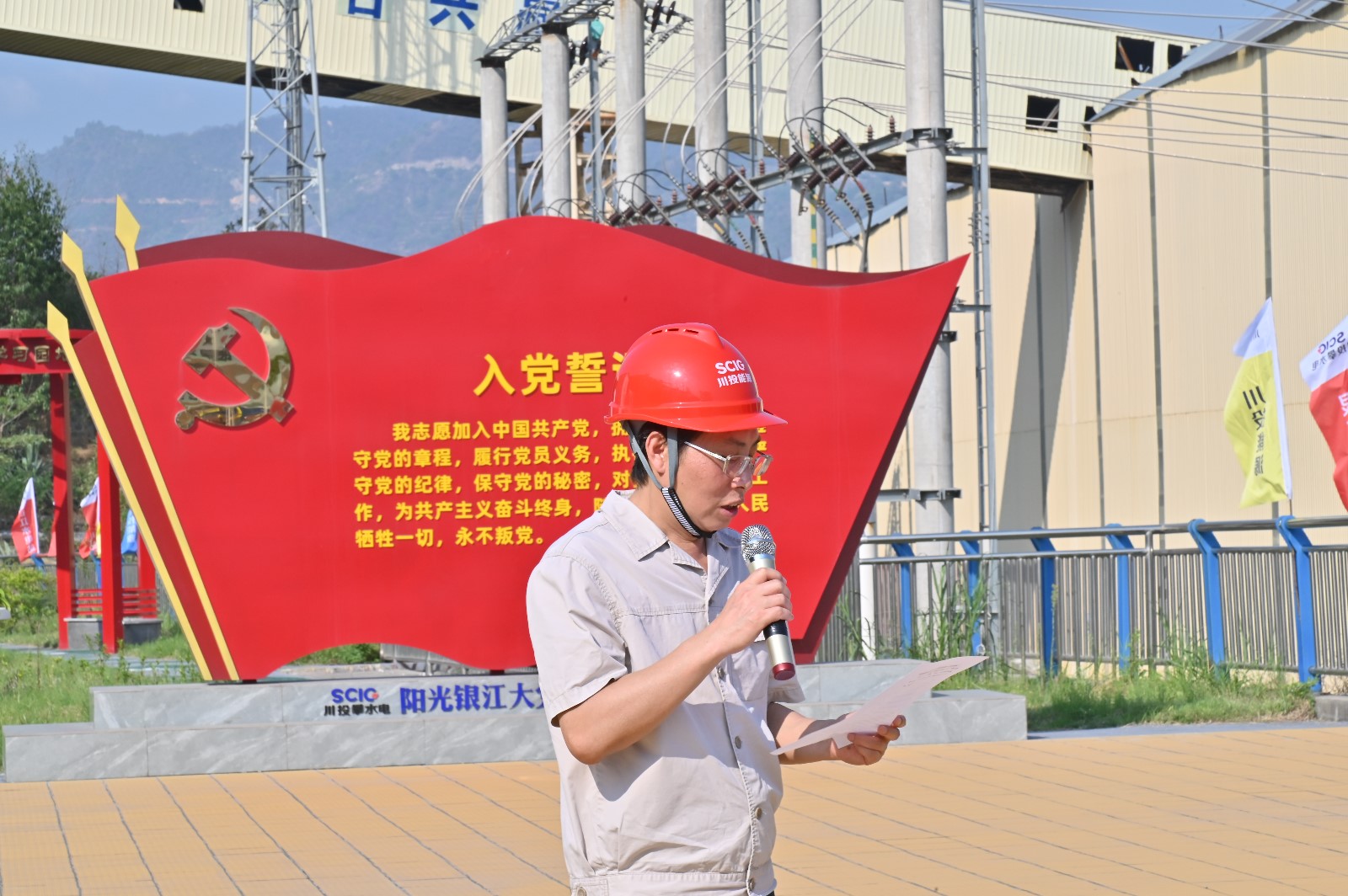 工地現(xiàn)場(chǎng),在烈日的“考驗(yàn)”下,川投能源副總經(jīng)理,攀水電公司黨總支書記、董事長(zhǎng)徐孝剛作動(dòng)員講話。他講到,黨的二十大明確提出:要在全社會(huì)弘揚(yáng)勞動(dòng)精神、奮斗精神、奉獻(xiàn)精神,培育時(shí)代新風(fēng)新貌。在黨102歲生日之際,今天我們團(tuán)結(jié)在一起,開(kāi)展主題黨日活動(dòng),傳承黨自力更生、艱苦創(chuàng)業(yè)的紅色基因,弘揚(yáng)團(tuán)結(jié)協(xié)作、無(wú)私奉獻(xiàn)的政治品格,建設(shè)綠色環(huán)保銀江,共建和諧文明工地;希望大家發(fā)揚(yáng)不怕累、不怕臟、不怕苦的勞動(dòng)精神,用勤勞的雙手,打造美麗銀江,展現(xiàn)“顏值擔(dān)當(dāng)”。