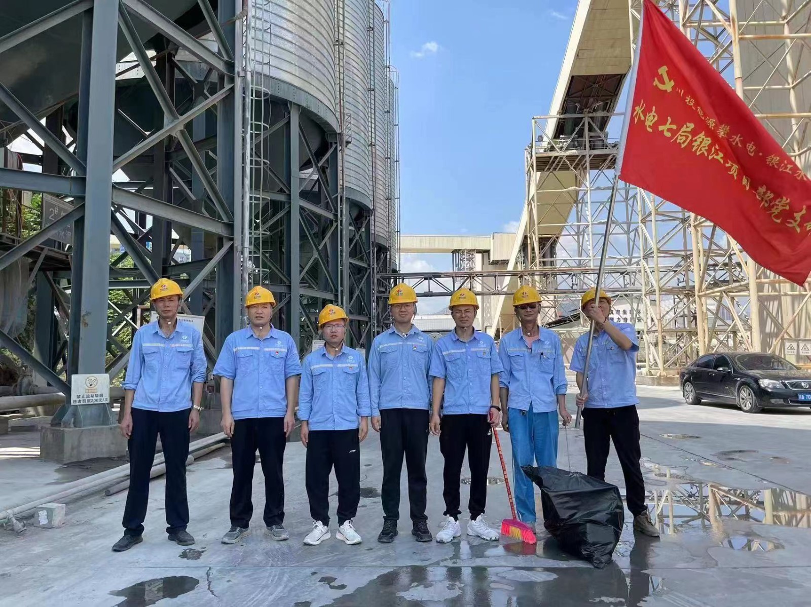 工程管理部給大家分配了“責(zé)任田”,按照施工區(qū)、公共區(qū)分成6個(gè)小組,機(jī)關(guān)一、二支部分別負(fù)責(zé)上、下游圍堰,設(shè)計(jì)監(jiān)理、檢測(cè)監(jiān)測(cè)、服務(wù)保障三個(gè)聯(lián)合黨支部負(fù)責(zé)進(jìn)場(chǎng)道路,水電五局項(xiàng)目部、水電七局項(xiàng)目部、廣東源天項(xiàng)目部三個(gè)臨時(shí)黨支部負(fù)責(zé)各自施工區(qū)域。各支部全體黨員、職工積極參與,充分發(fā)揮“特別能吃苦,特別能奉獻(xiàn)的銀江精神”,齊心協(xié)力創(chuàng)設(shè)文明工地,分別清掃施工區(qū)域的白色垃圾、煙頭,規(guī)整施工物資堆放。清理過(guò)程中,各小組分工明確,你清掃、我裝袋,你撿垃圾、我搬材料。汗水濕透了衣背,灰塵沾滿了手腳,然而整個(gè)清理過(guò)程,沒(méi)有人抱怨,沒(méi)有人嫌累,沒(méi)有人偷懶,充分展現(xiàn)了銀江建設(shè)者們昂揚(yáng)奮進(jìn)的工作狀態(tài)。