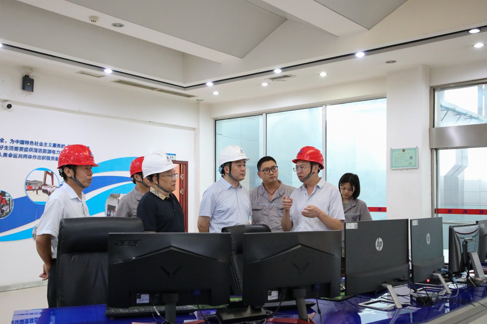 東西關(guān)公司黨委書記宋亞鵬對楊濤一行來訪表示熱烈歡迎,并陪同實地參觀了東西關(guān)水電站的大壩、船閘、廠區(qū)、車間及中央集控室等區(qū)域,詳細(xì)介紹了生產(chǎn)運行、機組運行等情況。