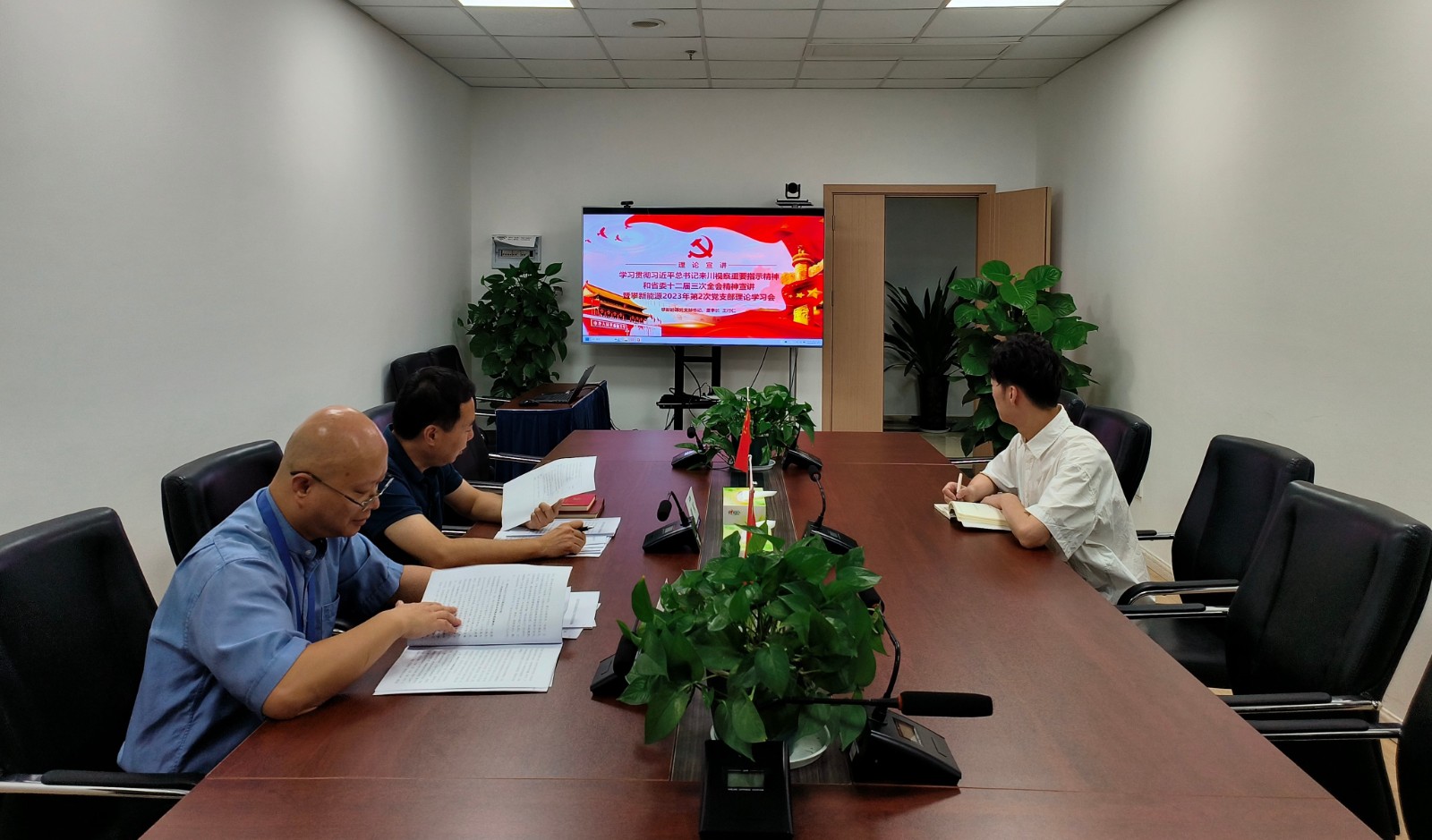 攀新能源領(lǐng)導(dǎo)班子成員及全體員工參加專(zhuān)題宣講,公司全體黨員參加黨支部理論學(xué)習(xí)會(huì)。