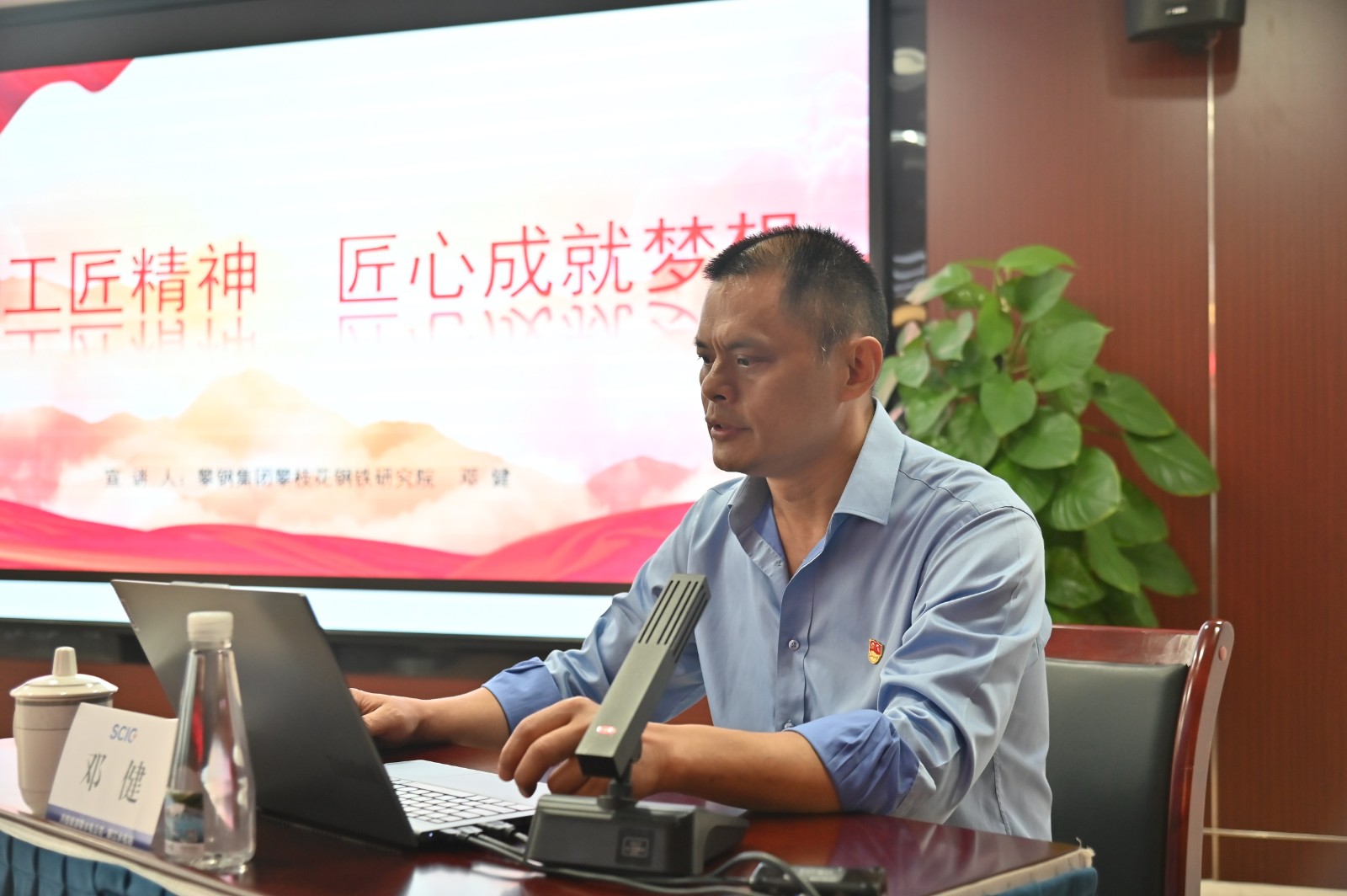 本次宣講會(huì)邀請(qǐng)到了“東區(qū)工匠”“電焊技術(shù)大比武第一名”、“三高人才”“攀鋼技能拔尖人才”榮譽(yù)稱(chēng)號(hào)獲得者,攀研院電焊高級(jí)技師鄧健為廣大職工進(jìn)行宣講。鄧健主要從事科研及鋼軌等材料焊接操作試驗(yàn)和重軌焊接實(shí)驗(yàn)室日常管理工作,宣講大會(huì)上,他結(jié)合黨的二十大精神和省委十二屆三次全會(huì)精神,用質(zhì)樸的語(yǔ)言、真摯的情感生動(dòng)講述了自己立足崗位、艱苦奮斗的工作歷程和典型事跡,并號(hào)召?gòu)V大職工學(xué)習(xí)和領(lǐng)悟勞模精神、勞動(dòng)精神、工匠精神的深刻內(nèi)涵,教育引導(dǎo)大家立足崗位、苦練本領(lǐng)、創(chuàng)先爭(zhēng)優(yōu),努力成為行業(yè)骨干、青年先鋒。