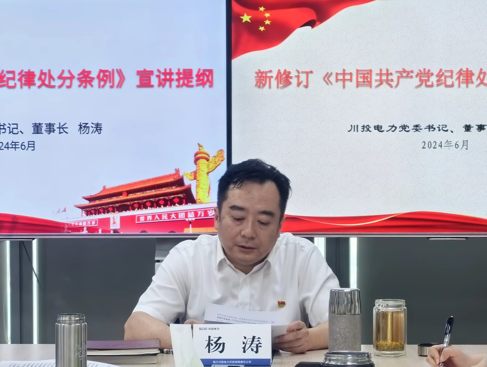 為深入貫徹落實(shí)習(xí)近平總書記關(guān)于黨的自我革命的重要思想,引導(dǎo)黨員干部職工增強(qiáng)紀(jì)律意識,強(qiáng)化思想武裝,提升黨紀(jì)學(xué)習(xí)教育成效,按照川投電力黨委關(guān)于開展黨紀(jì)學(xué)習(xí)教育的工作安排,6月24日上午,川投電力黨委書記、董事長楊濤講授黨紀(jì)學(xué)習(xí)教育紀(jì)律黨課。川投電力黨委委員、紀(jì)委書記謝麗主持會議。