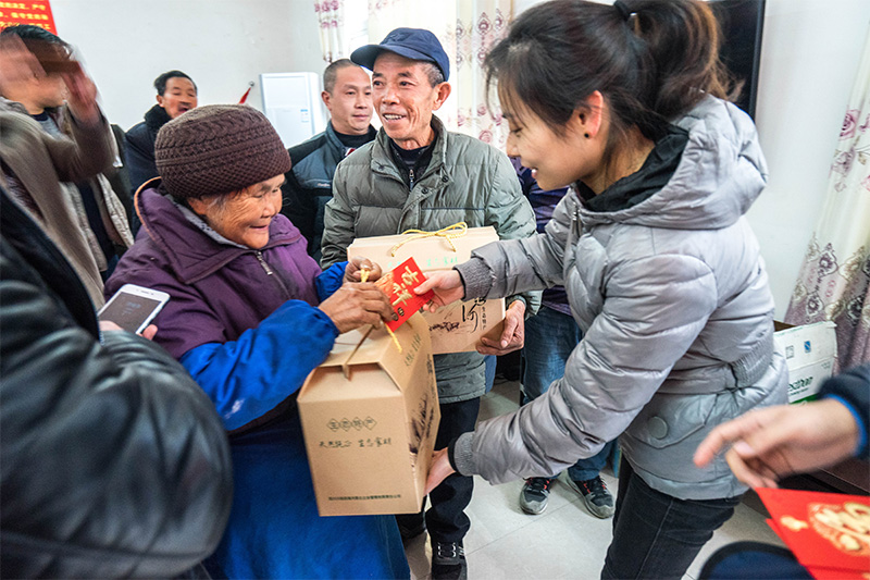 茶話會(huì)后,朱莉送上了田灣河公司支援村委會(huì)的辦公設(shè)備,并對(duì)在場(chǎng)貧困戶發(fā)放代表喜慶、祝福的新年紅包和慰問(wèn)品。隨后在村黨支部曾書(shū)記帶領(lǐng)下,田灣河公司一行人實(shí)地上門(mén)走訪部分行動(dòng)不便未能參加活動(dòng)的貧困戶,關(guān)心他們的生活起居、衣食住行,并幫助他們打掃衛(wèi)生、貼春聯(lián)、送祝福。一片忙碌的景象,讓貧困戶提前感受到節(jié)日的喜慶。