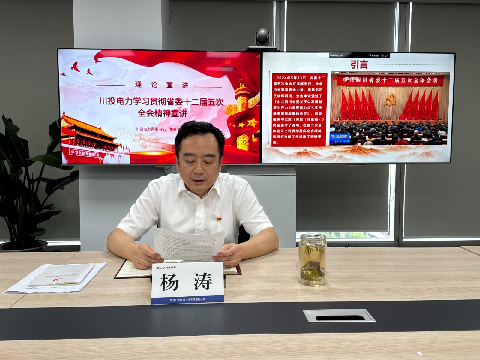 為全面深入學習宣傳貫徹省委十二屆五次全會精神,切實將公司各級黨組織和廣大黨員干部的思想行動統(tǒng)一到省委的決策部署上來,7月8日,川投電力黨委書記、董事長楊濤專題宣講中共四川省委十二屆五次全會精神。