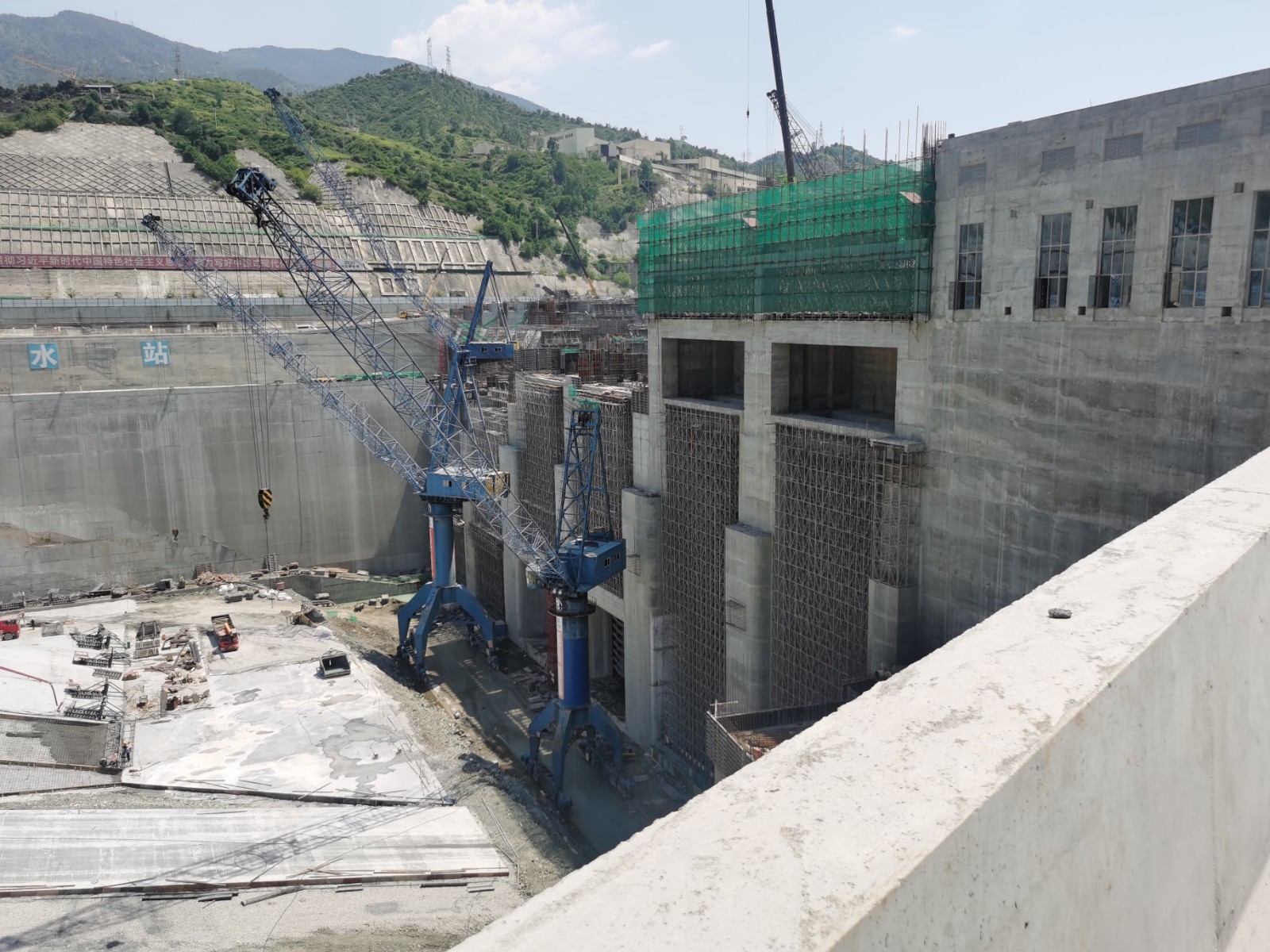 夏末秋初,烈日依然熾熱似火,大地如同蒸籠一般酷熱難耐,而銀江水電站施工現(xiàn)場還是塔吊旋轉(zhuǎn)、車流穿梭、人潮如涌的繁忙建設(shè)景象。銀江建設(shè)者們戰(zhàn)高溫斗酷暑,始終以飽滿的熱情和昂揚的斗志,踐行著集團公司對項目建設(shè)提出的“穩(wěn)快并重”四字總方針,工程建設(shè)一直沿著“穩(wěn)中求快、以快促穩(wěn)、穩(wěn)快并重”總基調(diào)在全力以赴地推進,為最終實現(xiàn)全面投產(chǎn)發(fā)電目標(biāo)不懈奮斗。