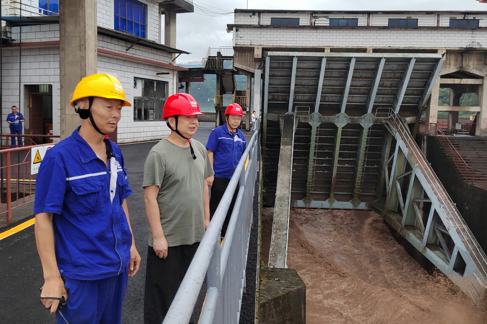 槽漁灘公司黨委書記、董事長何光富,副總經(jīng)理蔣玉兵帶領(lǐng)相關(guān)部門負(fù)責(zé)人趕赴電廠,對(duì)電廠的設(shè)備設(shè)施和防洪工作進(jìn)行檢查,現(xiàn)場聽取電廠負(fù)責(zé)人關(guān)于防汛工作的安排、部署及落實(shí)情況匯報(bào)。到庫區(qū)對(duì)竹菁?jí)巍⒍雍拥踢M(jìn)行認(rèn)真檢查,詳細(xì)了解水庫區(qū)域?qū)嵡椤?