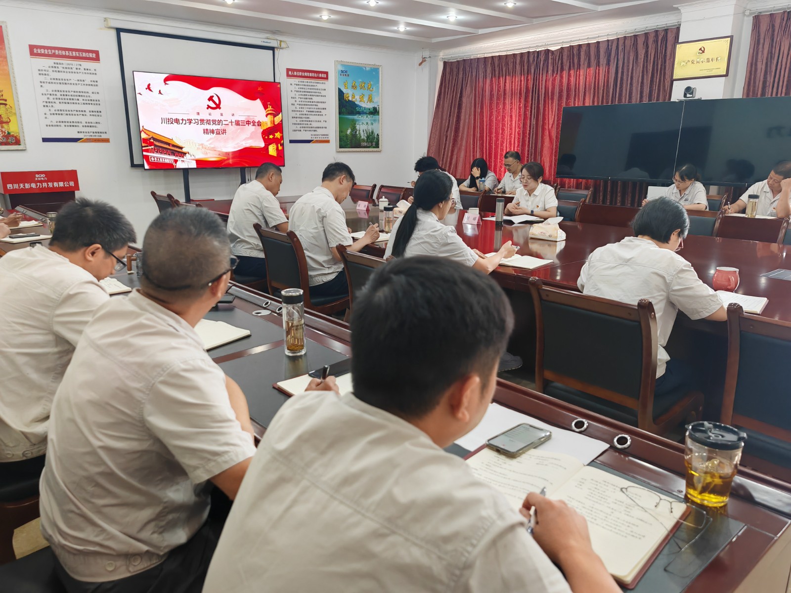近日,川投電力黨委委員、紀(jì)委書記謝麗到天彭電力宣講黨的二十屆三中全會精神,引導(dǎo)廣大黨員干部進(jìn)一步把思想和行動統(tǒng)一到黨中央決策部署上來,激發(fā)干事創(chuàng)業(yè)活力。天彭電力領(lǐng)導(dǎo)班子成員、黨員、干部、關(guān)鍵崗位人員參加宣講會。