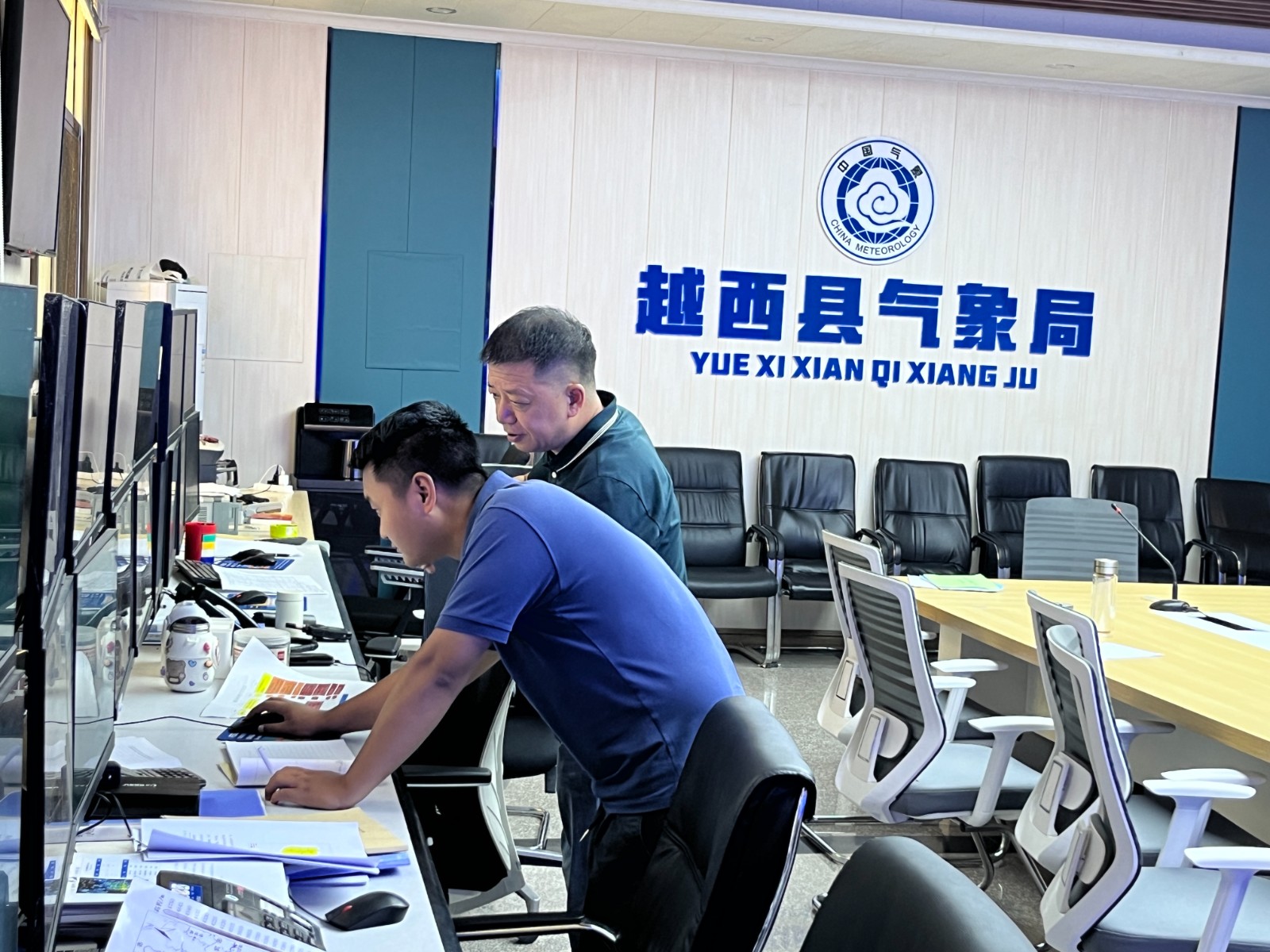 進(jìn)入越西縣氣象局,葉勁馳一行進(jìn)入越西縣國家氣象站、縣氣象服務(wù)中心,實(shí)地查看了越西縣雨情信息收集系統(tǒng),深入了解預(yù)警信息制作、發(fā)布和氣象數(shù)據(jù)的采集、傳輸、處理等全流程信息化建設(shè)情況。