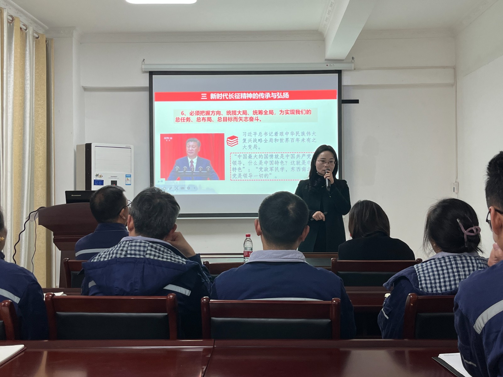 王興蓉以紅軍長征在四川為主線,從長征的基本概況、紅軍長征在四川的光輝歷程、新時代長征精神的傳承與弘揚等多個方面,用大量生動鮮活的案例,結合國內國際現狀,就新時代如何弘揚和傳承長征精神進行深入探討,進一步激發公司黨員干事創業的精氣神。