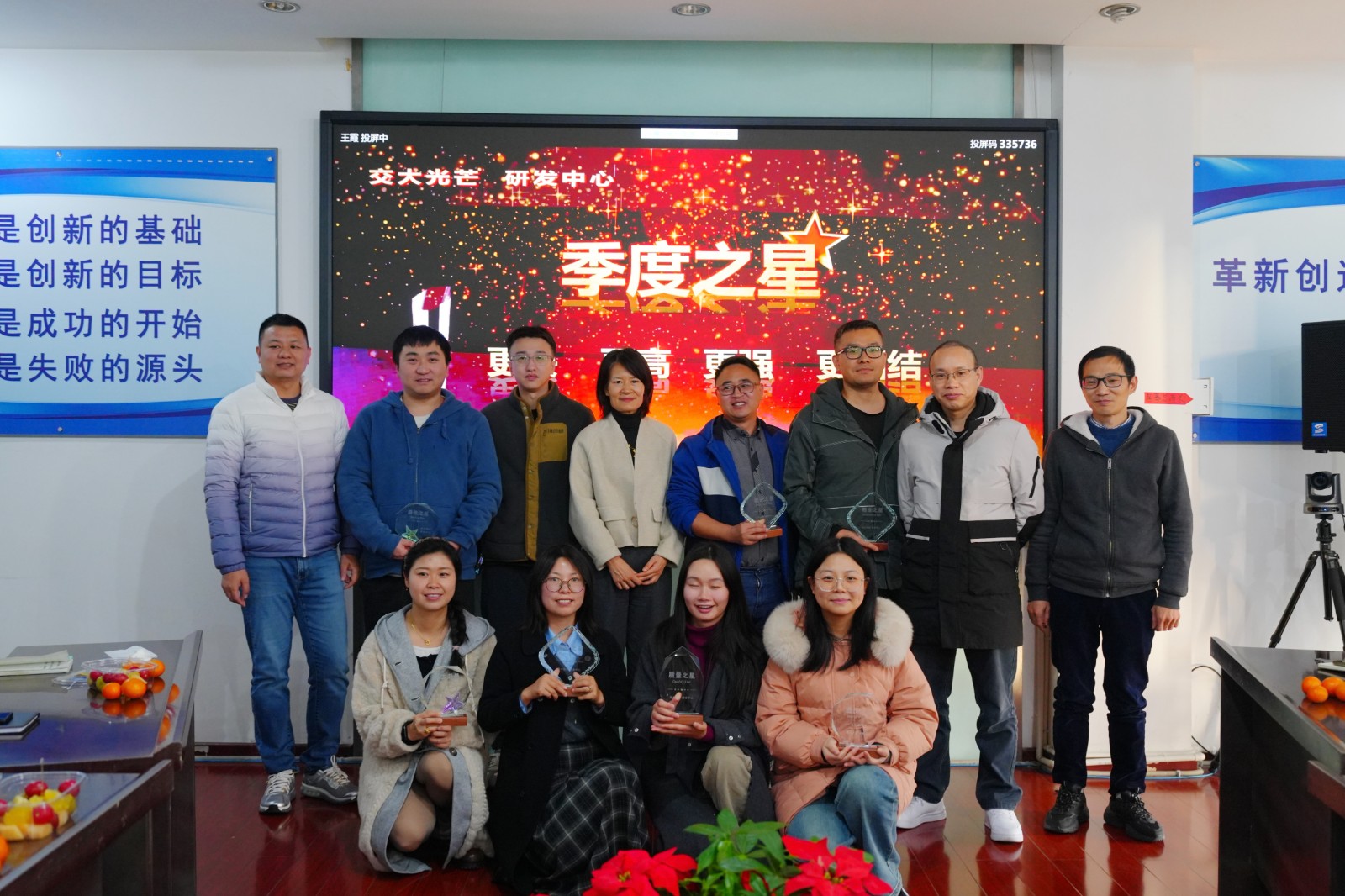 近日,交大光芒研發中心舉辦“季度之星”頒獎儀式。頒獎儀式由公司研發中心質效部經理羅靜主持,公司首席專家、副總經理陳奇志出席并講話,公司研發中心核心骨干及獲獎員工參加。