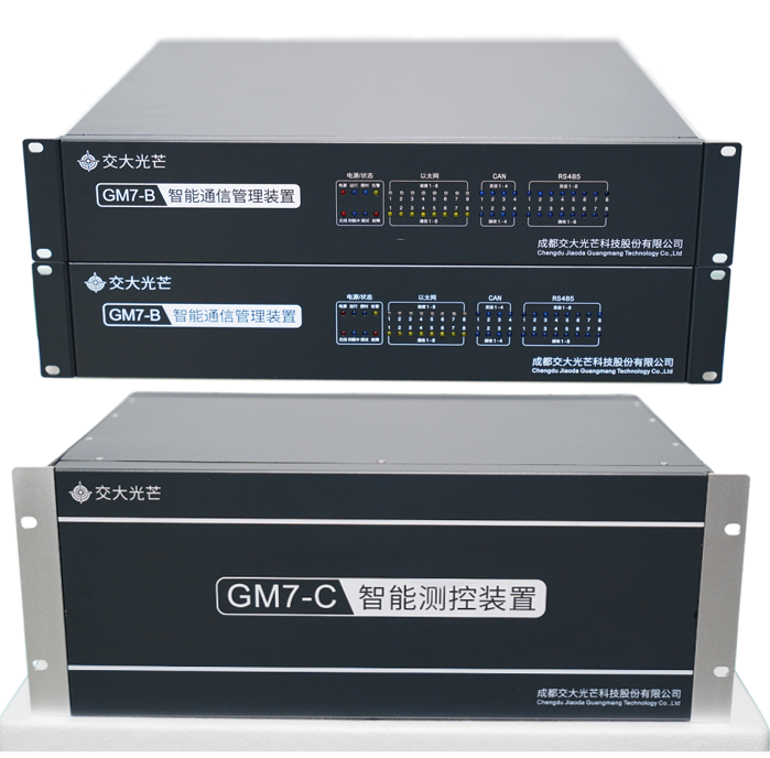 鐵路電力遠動終端裝置是鐵路供電調度控制(SCADA)系統的被控站通信管理單元和遠動終端單元(RTU)的統稱。其中,通信管理單元用于實現與鐵路供電綜合監控(SCADA)系統主站的遠程通信、與RTU及其他智能電子設備(IDE)的現場通信;遠動終端單元(RTU)用于對供配電設備設施進行數據采集與操作控制,實現遙測、遙信、遙控、遙調功能。交大光芒鐵路電力遠動終端裝置家族主要成員包括GM7-A智能監控裝置、GM7-B智能通信管理裝置、GM7-A智能測控裝置,是交大光芒在鐵路供電智能監控領域的拳頭產品之一。