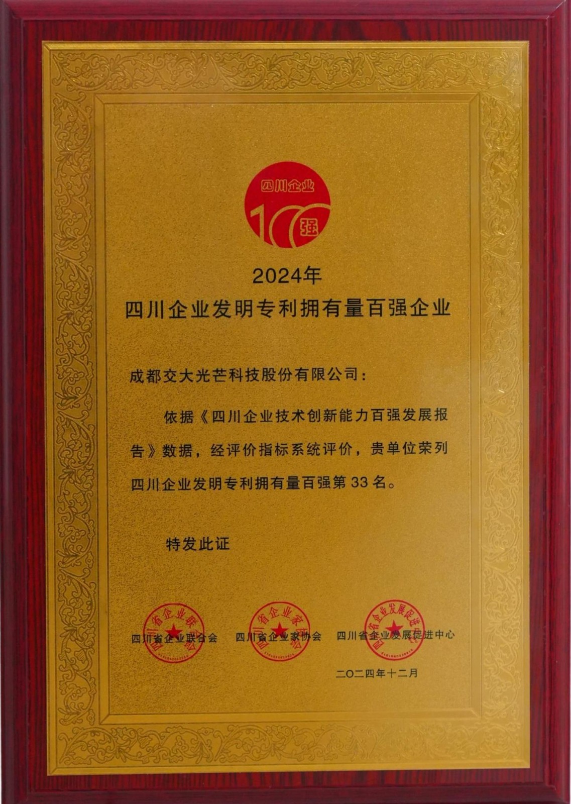 近日,以“技術創新榮耀四川”為主題的2024年四川企業技術創新發展大會在成都召開,大會發布《2024四川企業技術創新發展能力百強發展報告》,川投能源所屬交大光芒榮獲四川企業技術創新能力百強企業(第42位)和四川企業發明專利擁有量百強企業(第33位),這是交大光芒連續三年獲評“雙百強”企業認定。大會還公布了49名企業技術創新突出貢獻人物,交大光芒首席專家、副總經理陳奇志榮獲“2024年四川企業技術創新突出貢獻人物”稱號。