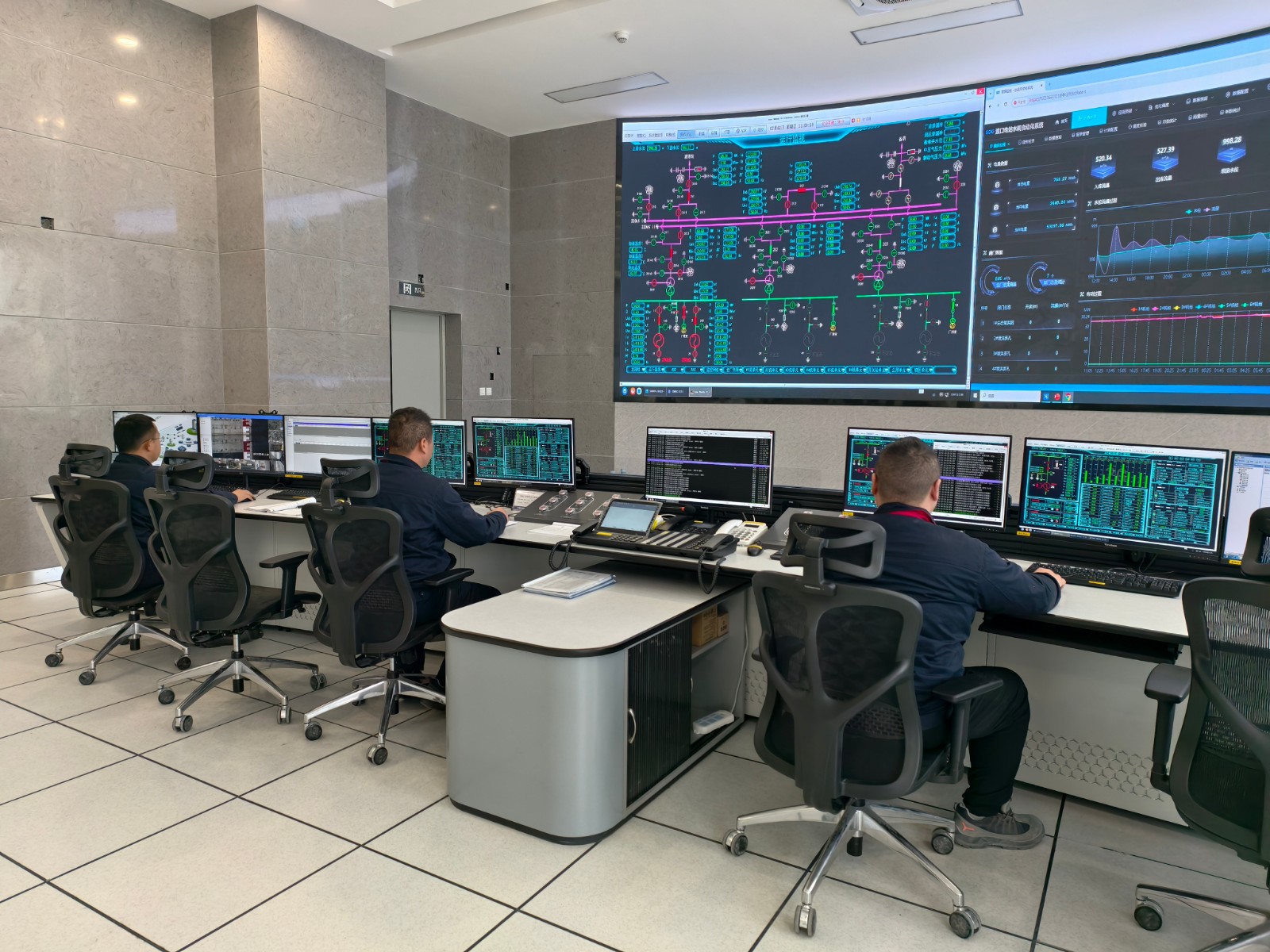 春節(jié)期間,運(yùn)行、維護(hù)人員及工程建設(shè)值守人員的工作絲毫沒有松懈。他們24 小時(shí)輪班值守,密切監(jiān)控著水情監(jiān)報(bào)系統(tǒng),確保及時(shí)掌握水位、流量等數(shù)據(jù)的變化,為水電站安全穩(wěn)定運(yùn)行提供精準(zhǔn)的數(shù)據(jù)支持。在運(yùn)行設(shè)備區(qū)域,他們定時(shí)巡檢,仔細(xì)檢查設(shè)備的運(yùn)行狀態(tài),哪怕是極其細(xì)微的異常聲響、溫度變化都逃不過他們的“火眼金睛”。中控室內(nèi),值班人員全神貫注地盯著屏幕,實(shí)時(shí)掌握電站整體運(yùn)行情況。