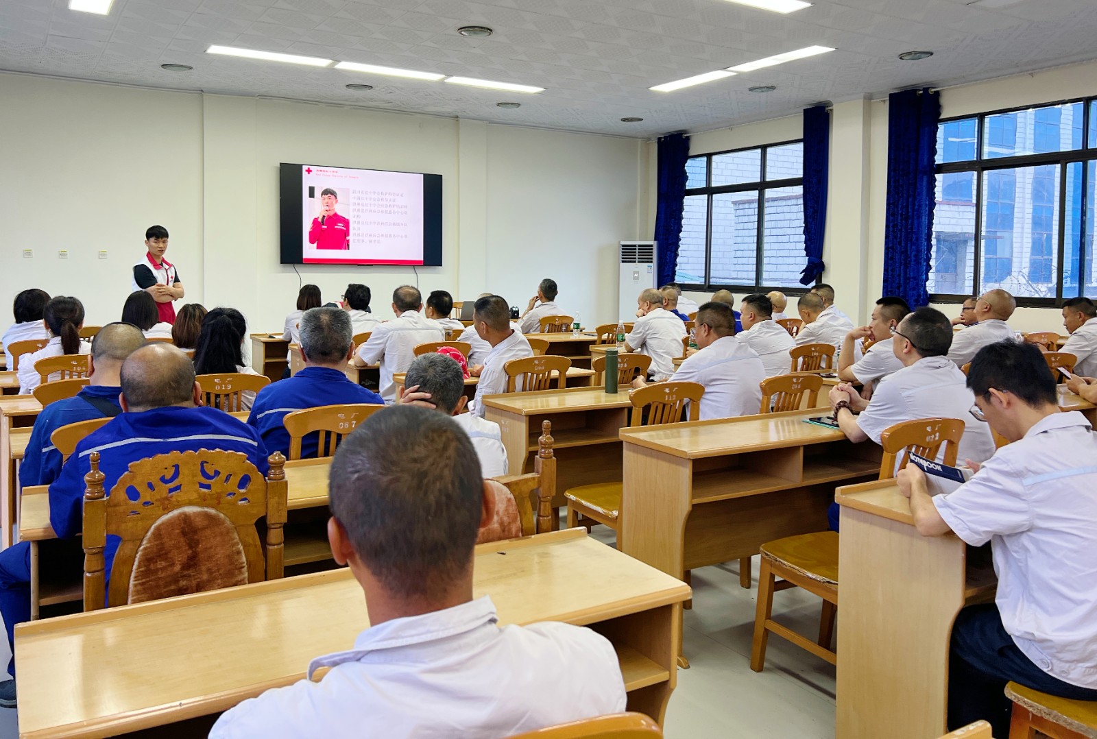 培訓(xùn)課程采用“理論+實(shí)踐”的“實(shí)操課堂”教學(xué)模式。宿雅琴首先以紅十字運(yùn)動(dòng)發(fā)展史為切入點(diǎn),深入闡釋"人道、博愛、奉獻(xiàn)"的紅十字精神內(nèi)核,著重強(qiáng)調(diào)培養(yǎng)急救意識(shí)對(duì)保障安全生產(chǎn)的重要性。呂學(xué)兵則結(jié)合電力行業(yè)特性,針對(duì)地震、火災(zāi)、觸電等常見事故場(chǎng)景,給大家講解了逃生急救技能、創(chuàng)傷處理的包扎技術(shù)等。還針對(duì)電廠在生產(chǎn)中容易出現(xiàn)的情況,詳細(xì)講解了心肺復(fù)蘇的操作技巧和AED的使用方法。通過專業(yè)、生動(dòng)的講解,讓大家更加熟練的掌握了急救知識(shí)和技能,確保大家在面對(duì)突如其來的意外和傷害時(shí),能夠用學(xué)到的急救方法進(jìn)行自救和幫助他人脫離危險(xiǎn)。培訓(xùn)結(jié)束后,全體急救人員還進(jìn)行了理論和實(shí)操考試,成績合格的學(xué)員獲得了紅十字會(huì)頒發(fā)的應(yīng)急救援證。