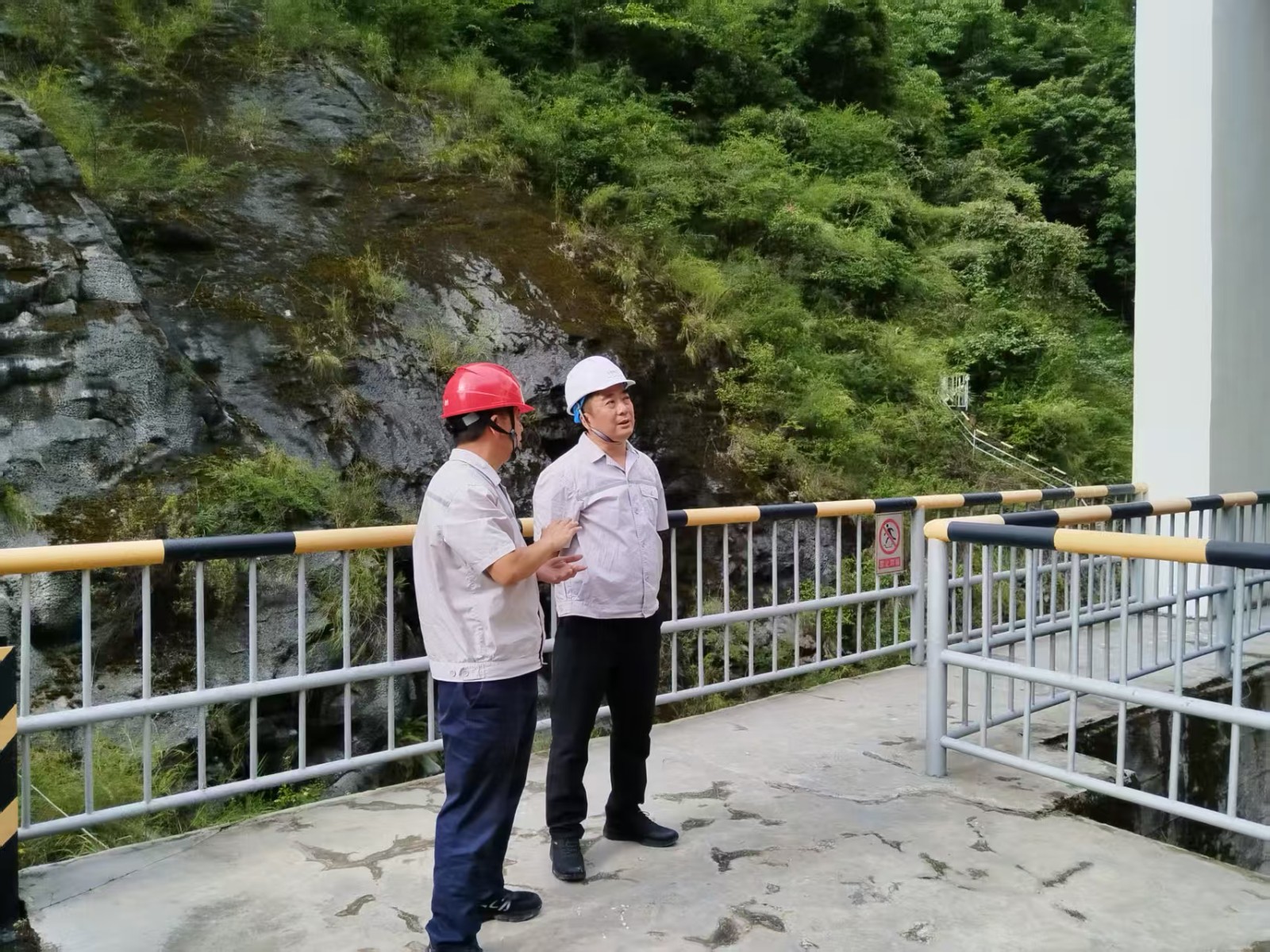 楊濤一行深入大壩、主副廠房、中控室、升壓站等關(guān)鍵區(qū)域,圍繞水工建筑物安全度汛、機(jī)組運(yùn)行工況、設(shè)備檢修維護(hù)、消防設(shè)施配備及應(yīng)急物資儲(chǔ)備等方面,逐項(xiàng)排查風(fēng)險(xiǎn)隱患。檢查中,楊濤強(qiáng)調(diào),要堅(jiān)持“人民至上、生命至上”理念,以極限思維將防汛減災(zāi)措施細(xì)化落實(shí)到最小單元,堅(jiān)決守牢安全底線;針對(duì)大壩落石風(fēng)險(xiǎn),要求電廠研究采用遠(yuǎn)程監(jiān)視和控制方式,保障大壩值班人員安全,同時(shí)進(jìn)一步改善員工住宿條件。