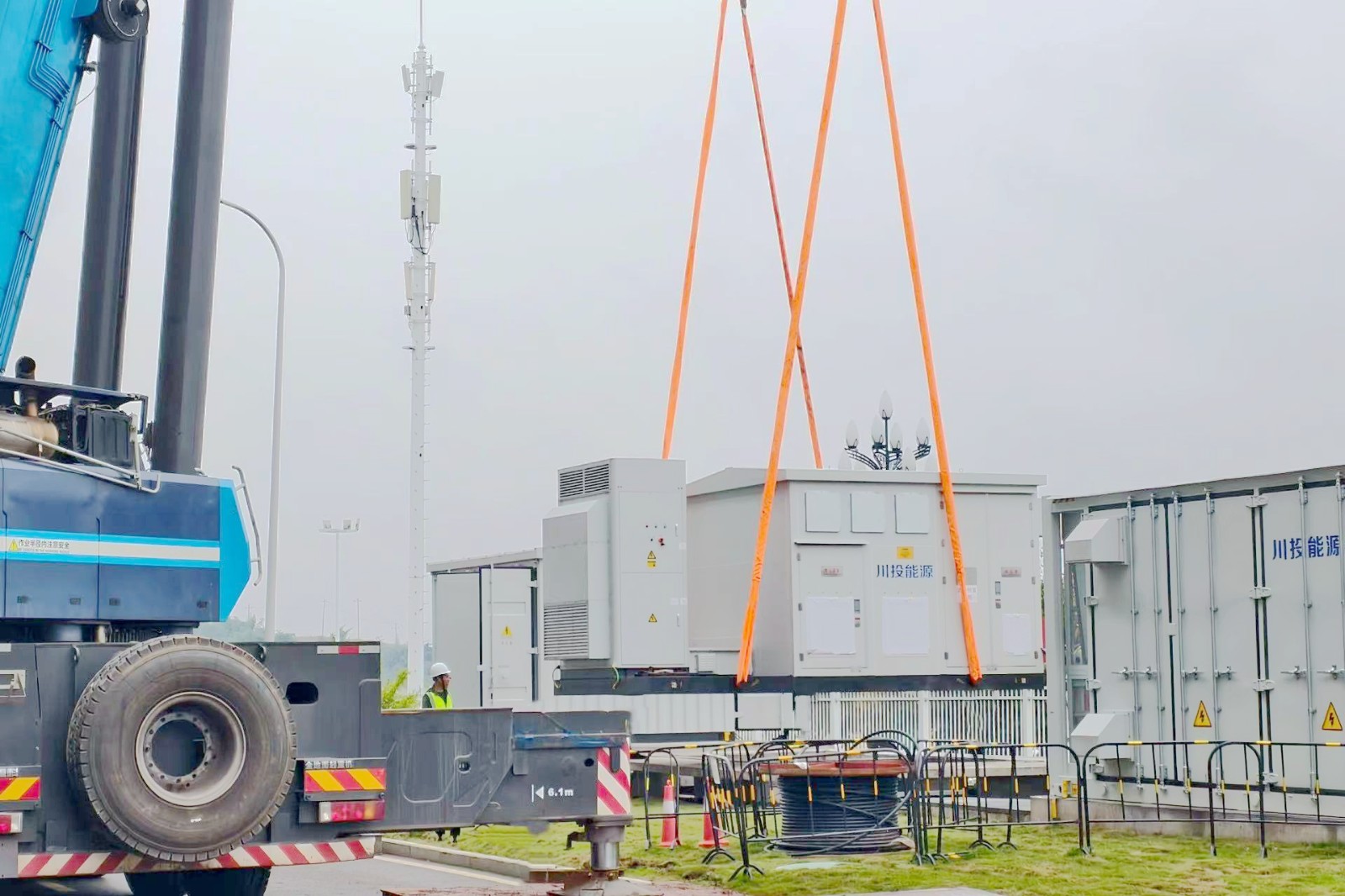 10月24日,四川時(shí)代60MW/120MWh工商業(yè)用戶側(cè)儲能示范項(xiàng)目一期工程位于YB1、YB2廠區(qū)內(nèi)儲能設(shè)備(以下簡稱“四川時(shí)代項(xiàng)目”)正式啟動(dòng)吊裝作業(yè),作為項(xiàng)目建設(shè)的關(guān)鍵節(jié)點(diǎn),儲能設(shè)備的吊裝標(biāo)志著工程進(jìn)入全面加速推進(jìn)階段。截至目前,項(xiàng)目已完成位于YB5、YB6廠區(qū)內(nèi)儲能設(shè)備吊裝及相關(guān)工作,整體施工穩(wěn)步有序推進(jìn)。