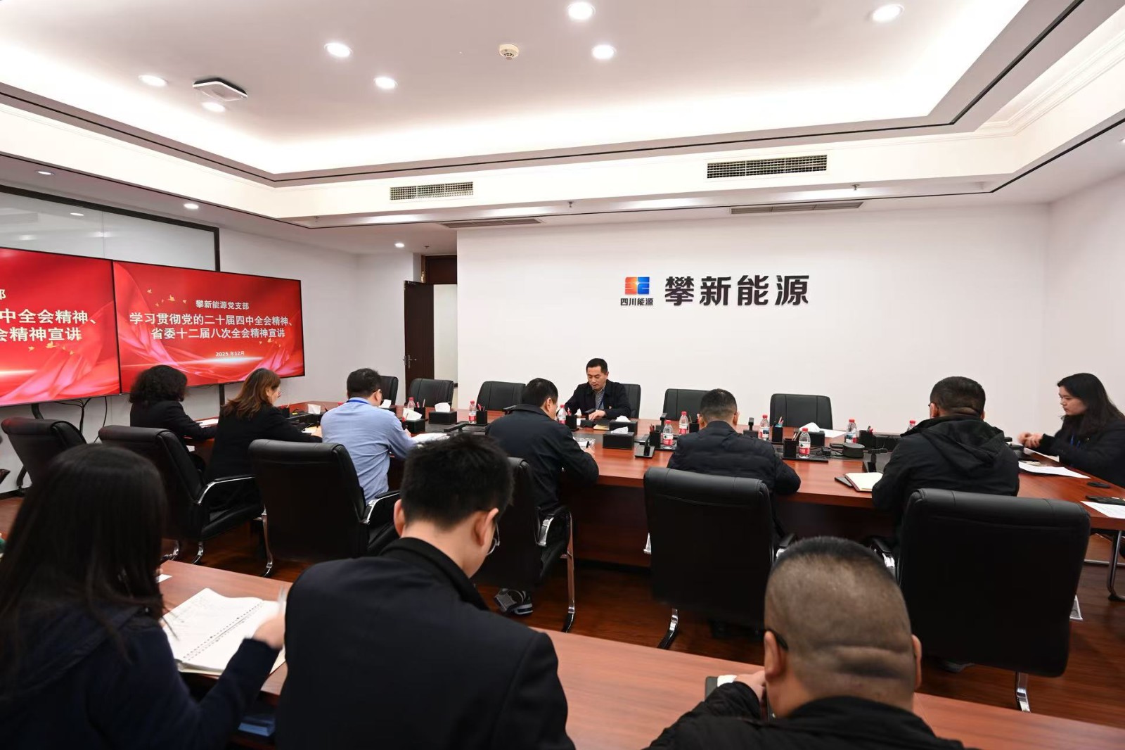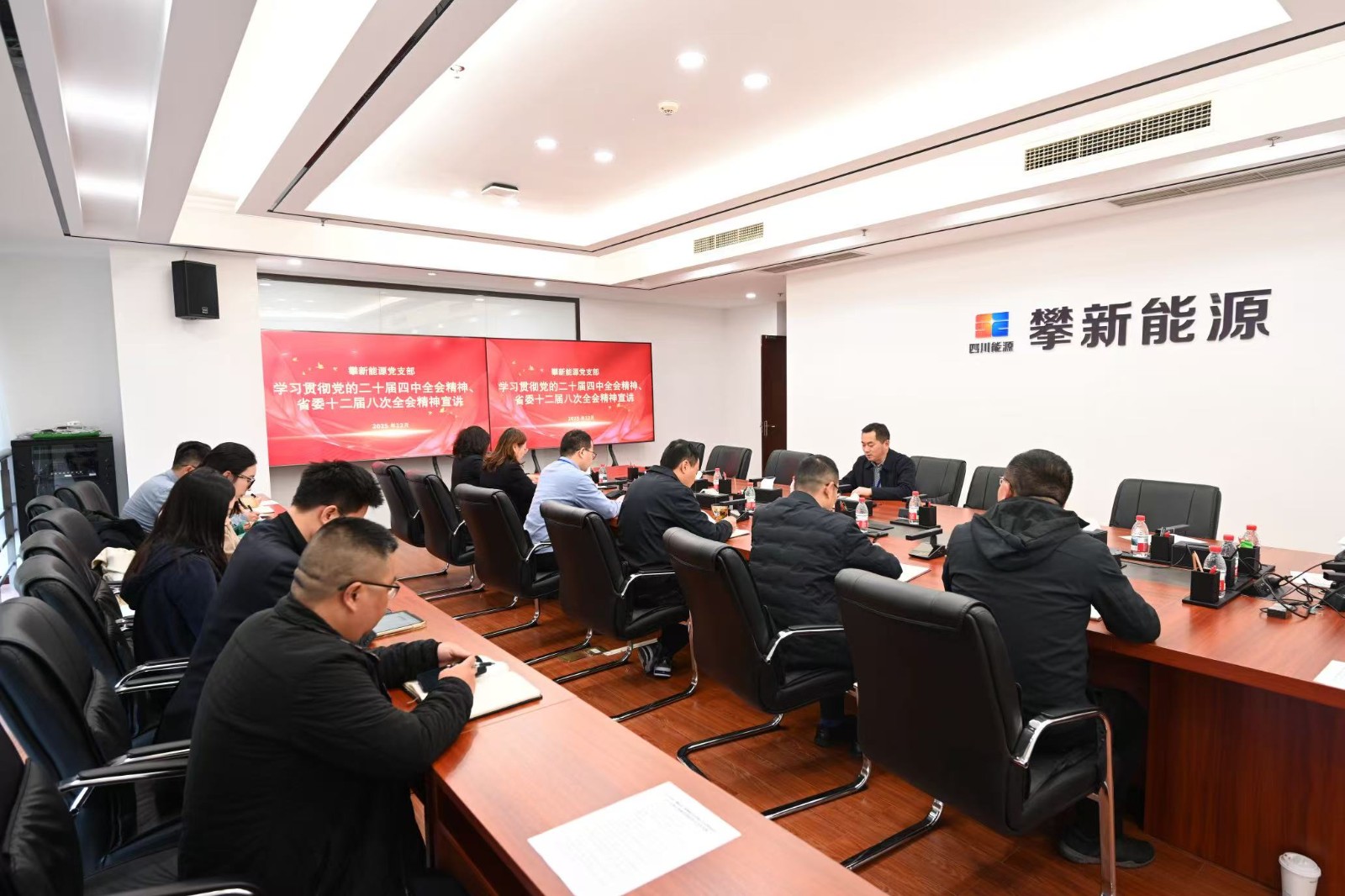12月22日,攀新能源黨支部組織召開全體黨員大會,黨支部書記、董事長王行仁講授專題黨課,集中宣講黨的二十屆四中全會和省委十二屆八次全會精神,公司領導班子成員及全體黨員、預備黨員、入黨積極分子參加學習。