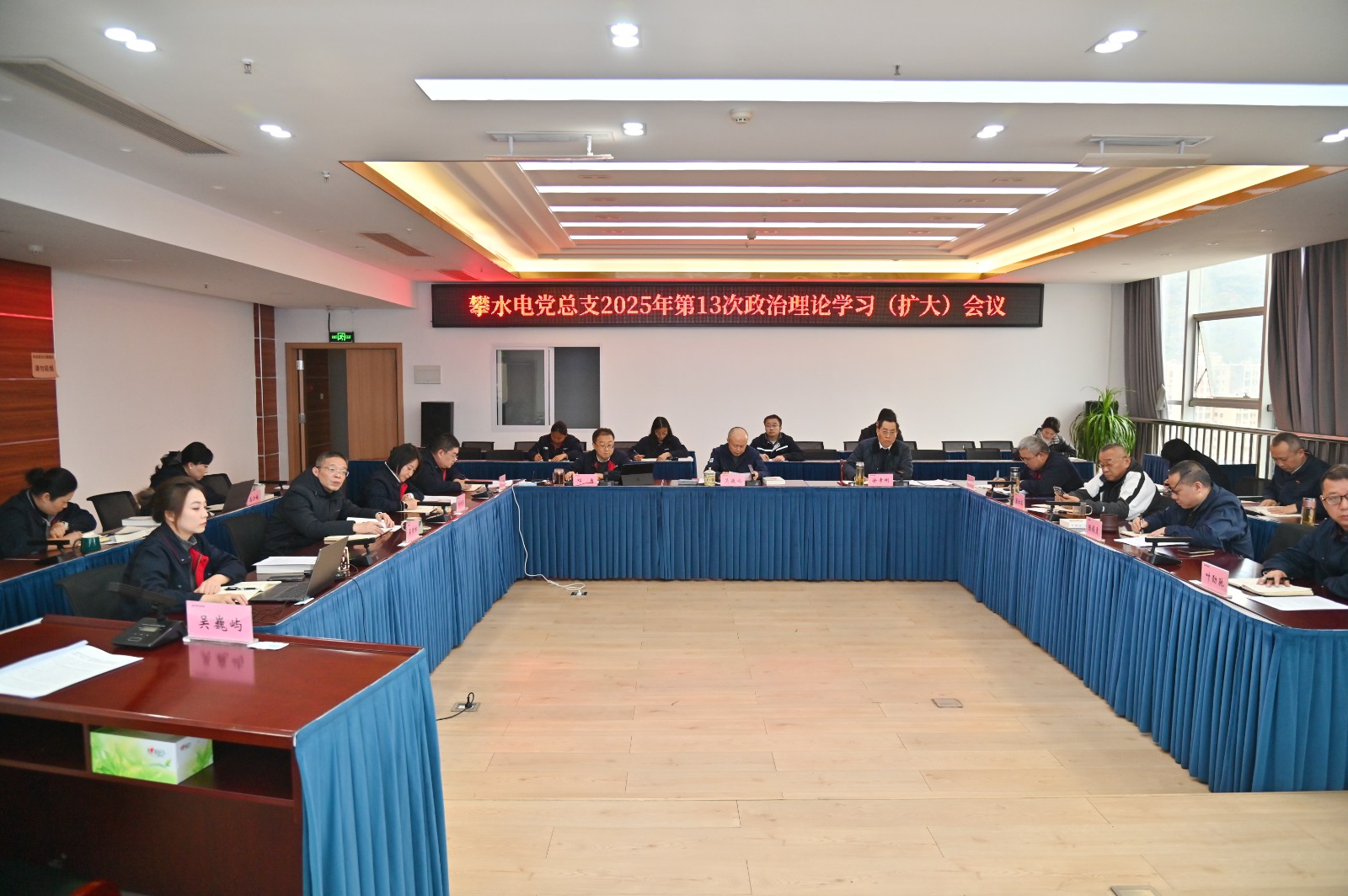 12月25日,攀水電公司黨總支組織召開了2025年第13次政治理論學(xué)習(xí)(擴大)會,會議由公司黨總支副書記、總經(jīng)理吳巍嶼主持,黨總支政治理論學(xué)習(xí)會成員、全體中干、統(tǒng)戰(zhàn)對象、入黨積極分子共計20余人參加。
