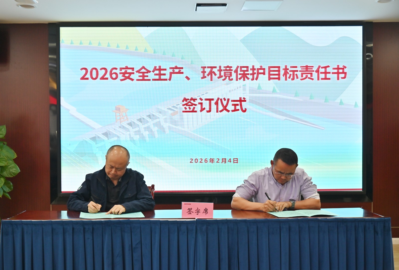會議傳達(dá)學(xué)習(xí)了近期安全文件精神,對相關(guān)工作做了安排部署。會議聽取了公司安環(huán)職委員會辦公室及各參建單位關(guān)于2025年安全環(huán)保工作總結(jié)暨2026年安全環(huán)保工作計劃匯報,肯定了2025年安全環(huán)保目標(biāo)圓滿完成的成績,指出了各參建單位安全環(huán)保方面存在不足,并分析了2026年安全環(huán)保風(fēng)險以及歲末年初嚴(yán)峻的安全形勢,提出了相關(guān)工作要求,公司同各部門、各參建單位簽訂了2026年安全生產(chǎn)、環(huán)境保護(hù)和職業(yè)健康目標(biāo)責(zé)任書