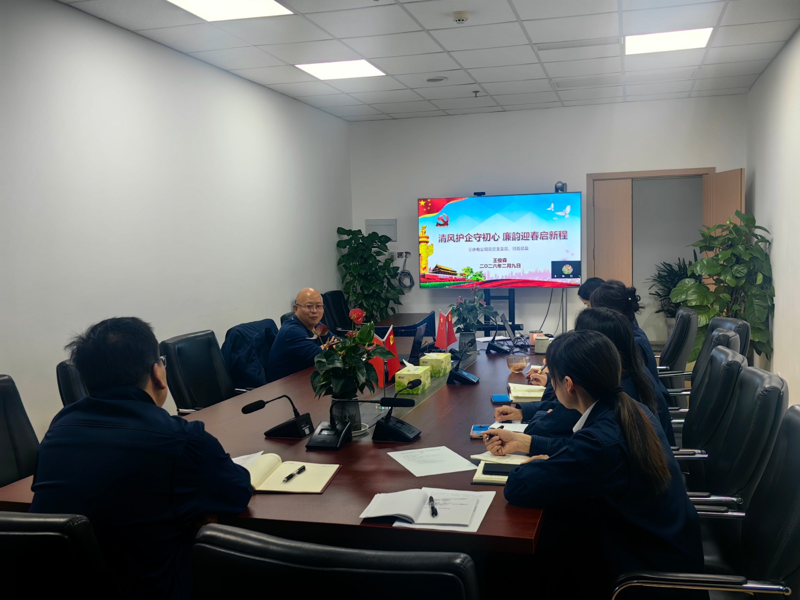為進一步筑牢干部職工理想信念根基,強化全體員工廉潔自律意識與責(zé)任擔(dān)當精神,精準掌握基層職工思想動態(tài)、工作狀態(tài)與生活情況,2月9日,攀水電公司黨總支委員、財務(wù)總監(jiān)王俊森以“清風(fēng)護企守初心 廉韻迎春啟新程”為主題,在分管部門講授廉潔專題黨課,并同步開展2025年度組織生活會前談心談話。公司營銷發(fā)展部、資金財務(wù)部全體人員參加。