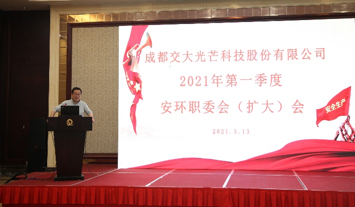 交大光芒黨總支書記、安環(huán)職委會主任、總經(jīng)理劉成輝對2021年安環(huán)職重點工作進行部署,并安排了近期安全環(huán)保大檢查工作。劉成輝指出,公司上下要認真落實疫情防控常態(tài)化要求,仔細梳理安全生產(chǎn)、環(huán)境保護、職業(yè)健康工作,落實風險分級管控和隱患排查整改雙重預(yù)防機制,將安全關(guān)口前移,保障公司經(jīng)營發(fā)展平安,并與各部門分管領(lǐng)導(dǎo)和負責人簽訂了2021年度安環(huán)職目標責任書。