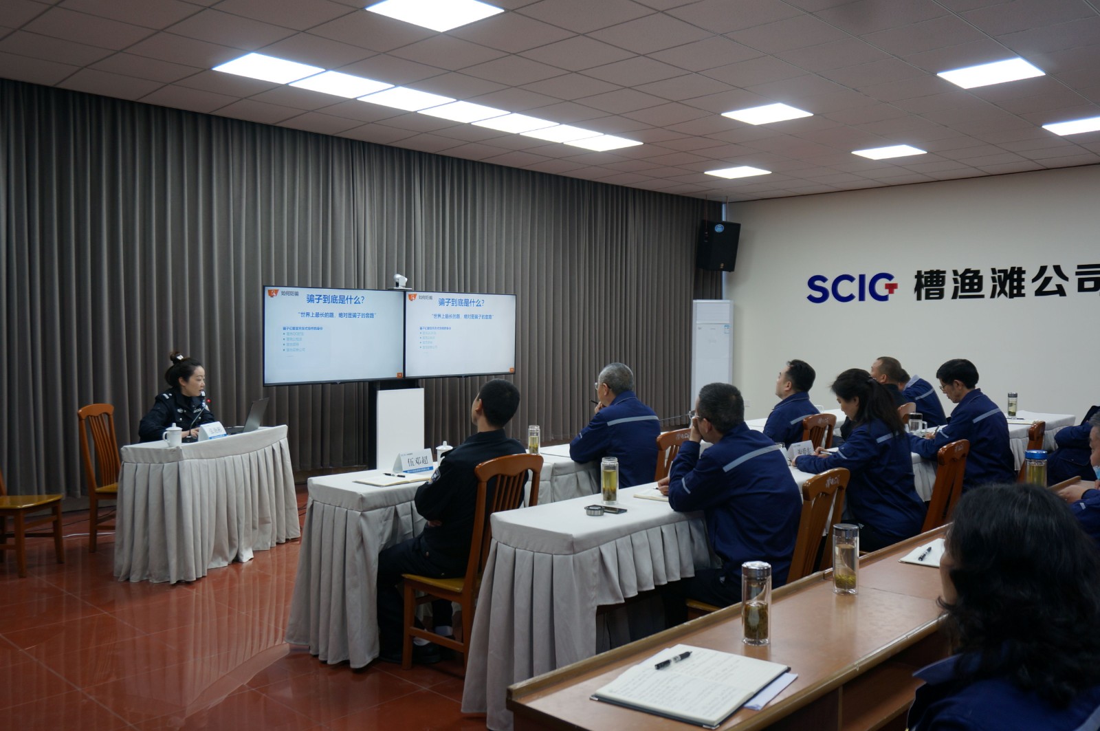 4月15日是“全民國家安全教育日”,一方面為宣傳貫徹習(xí)近平總書記對打擊電信網(wǎng)絡(luò)詐騙犯罪工作重要指示精神,另一方面也增強(qiáng)公司員工和駕駛員的交通安全意識(shí),提高遵守交通法規(guī)的自覺性,川投能源槽漁灘公司特邀請洪雅縣公安局刑警大隊(duì)和交警大隊(duì)到公司進(jìn)行預(yù)防電信網(wǎng)絡(luò)詐編培訓(xùn)講座和交通安全法規(guī)培訓(xùn)講座。公司黨委書記、董事長楊濤和在家的公司經(jīng)營班子成員、中層以上干部和所有財(cái)務(wù)人員共40余人參加這次培訓(xùn)。
