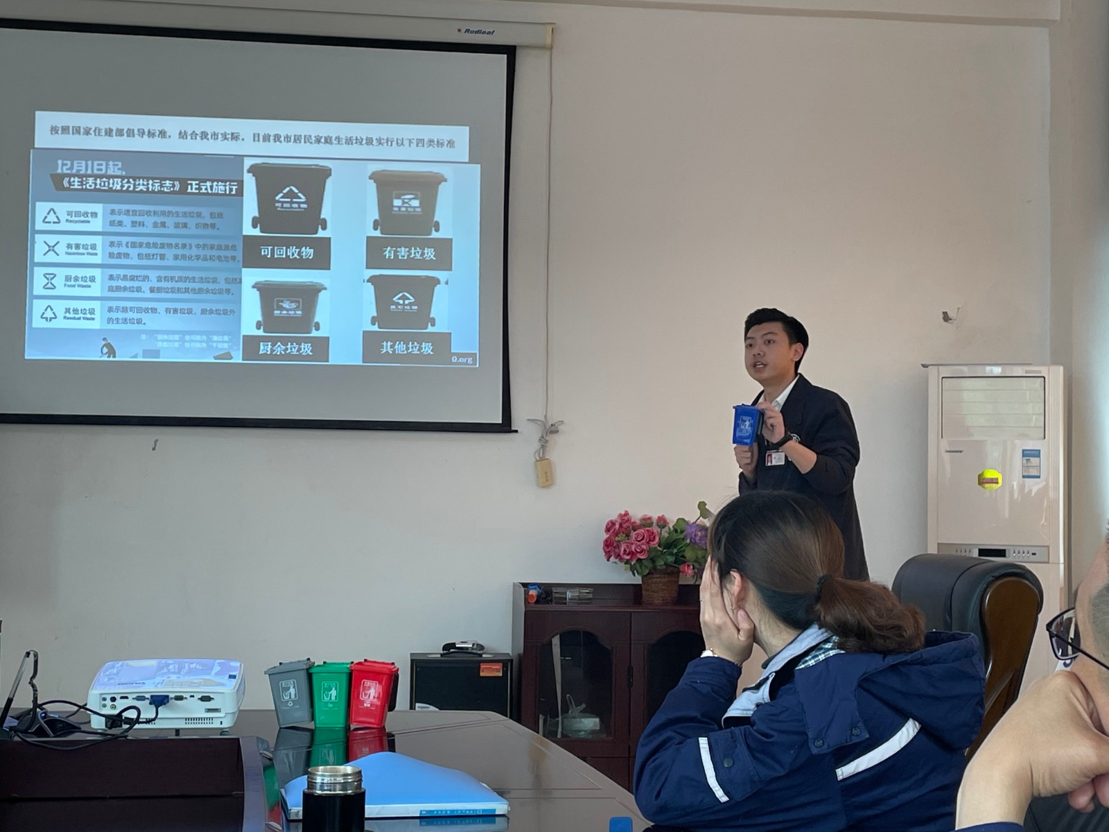 此次職工培訓特邀人人安康公益服務中心宣教科的老師主講,普及了健康環(huán)保理論知識和環(huán)保法律法規(guī),四川省生活垃圾分類的管理辦法、單位個人如何正確進行垃圾分類以及環(huán)境污染與健康飲食飲水知識等相關內容。針對電站員工關于部分生活垃圾如何分類的困惑,老師結合生活實際,給大家一一作了講解。