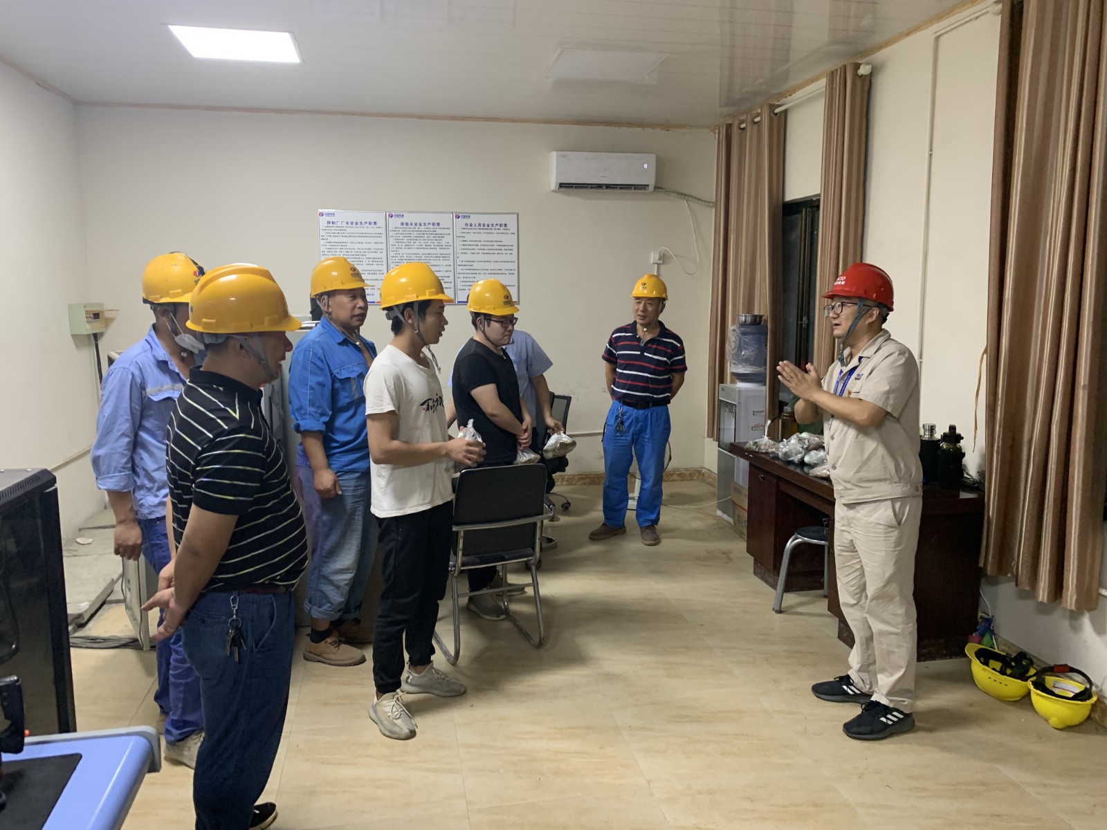 6月13日端午節(jié)前夕深夜,公司值班領(lǐng)導(dǎo)、黨總支委員、董事會(huì)秘書、工會(huì)主席鄧勇,總經(jīng)理助理唐伽帶領(lǐng)值班人員,對銀江水電站工地現(xiàn)場防洪度汛值班點(diǎn)位及施工現(xiàn)場進(jìn)行了檢查;公司志愿者服務(wù)隊(duì)共計(jì)10余人對節(jié)日期間堅(jiān)守在銀江水電站工地夜間施工的一線人員進(jìn)行了慰問。