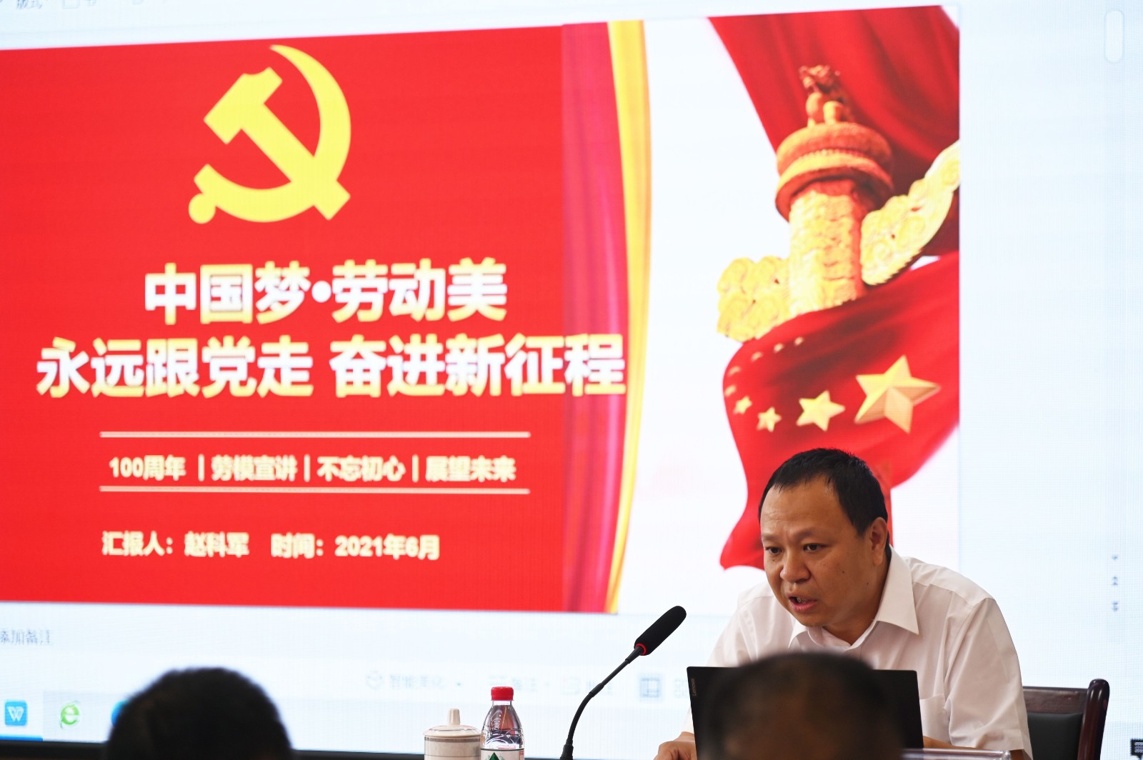 省級勞模、攀枝花市第二小學(xué)教育集團教師趙科軍結(jié)合黨史學(xué)習(xí)和自身支教經(jīng)歷,用簡單淳樸的語言以《傳承勞模精神,面向未來發(fā)展》為題作了宣講分享,并做了紅色書籍《把一切獻給黨》的讀書分享。