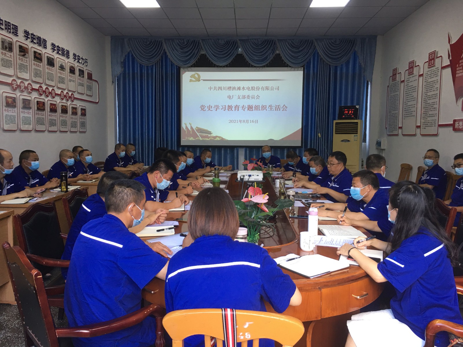 按照上級和公司黨委《關于召開黨史學習教育專題組織生活會的通知》要求,槽漁灘公司電廠黨支部于8月16日在電廠黨建活動室召開了黨史學習教育專題組織生活會。會議由支部書記蔣玉兵同志主持。公司總經理何光富,黨委副書記張啟林,副總經理費雅萍列席會議。