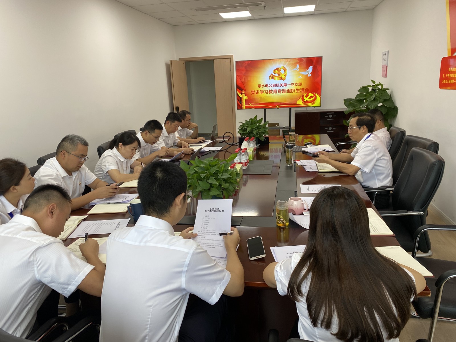 為認(rèn)真貫徹“學(xué)史明理、學(xué)史增信、學(xué)史崇德、學(xué)史力行”要求,交流學(xué)習(xí)體會(huì),查找差距不足,8月18日上午及8月20日下午,攀水電公司機(jī)關(guān)第一黨支部組織召開黨史學(xué)習(xí)教育專題組織生活會(huì)。會(huì)議由支部書記李偉主持,川投能源公司副總經(jīng)理、攀水電公司黨總支書記徐孝剛作為川投能源聯(lián)系攀水電公司領(lǐng)導(dǎo)列席會(huì)議指導(dǎo),同時(shí)作為支部普通黨員參加會(huì)議。公司黨總支委員、工會(huì)主席、董事會(huì)秘書鄧勇,副總經(jīng)理周軍以普通黨員身份參加會(huì)議。