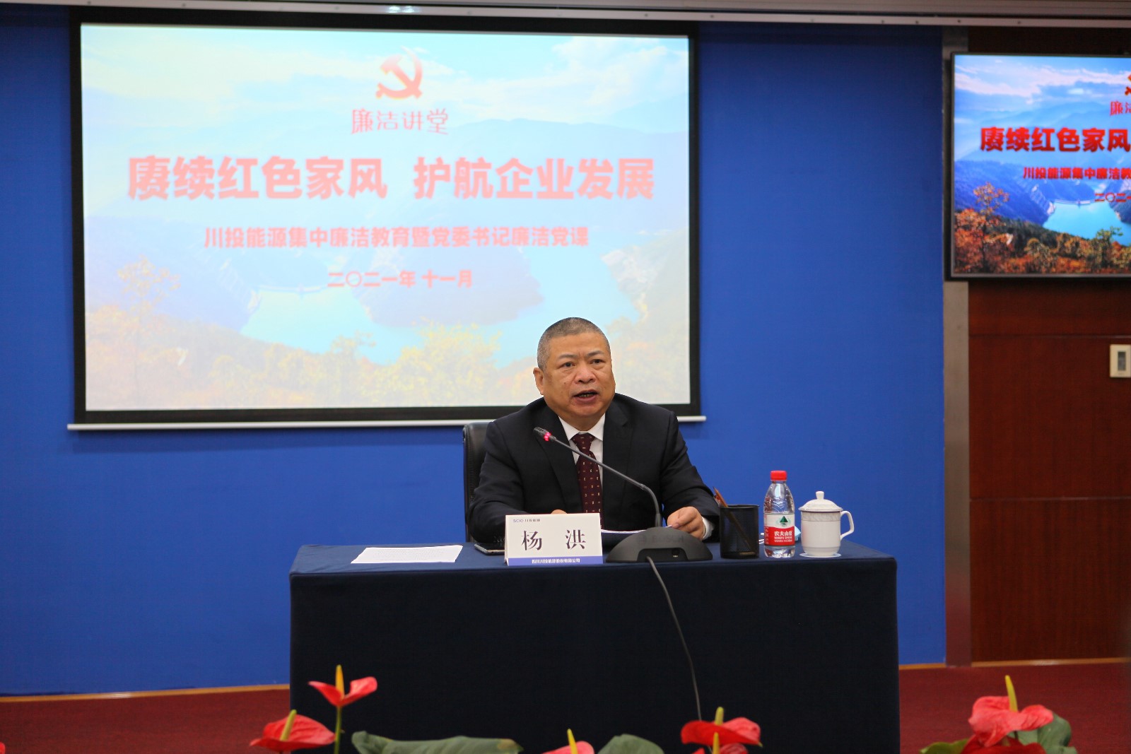 為貫徹落實中央關(guān)于全面從嚴(yán)治黨部署和要求,切實推進(jìn)公司黨風(fēng)廉政建設(shè),推動“好風(fēng)傳家”工作落實落細(xì),2021年11月25日上午, 川投能源黨委組織召開了2021年集中廉潔教育會,公司黨委書記、副董事長、總經(jīng)理楊洪以“賡續(xù)紅色家風(fēng),護(hù)航企業(yè)發(fā)展”為題給公司黨員干部講授廉潔黨課,并組織觀看了由中央紀(jì)委國家監(jiān)委宣傳部、中央廣播電視總臺聯(lián)合制作的電視專題片《正風(fēng)反腐就在身邊》之《嚴(yán)正家風(fēng)》。公司黨委副書記、工會主席冉蘭平主持會議。